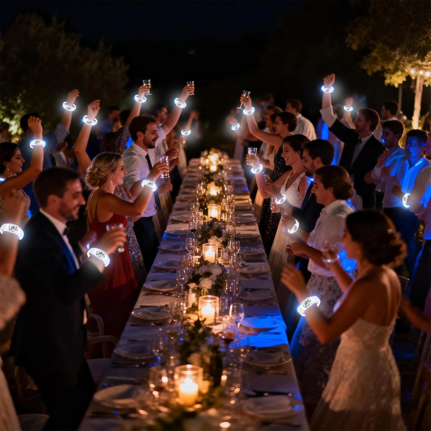 Illuminate your events with our vibrant LED Party Bracelets! This 100-piece set features eight exciting colors — Red, Orange, Yellow, Green, Blue, Pink, Purple, and White — and offers three dynamic lighting modes: steady glow, fast flash, and slow flash to match any party mood. Made from soft, durable silicone with a fixed 7.5cm (2.95") diameter, these light up bracelets for party are designed to comfortably fit most adult wrists. Perfect for concerts, festivals, weddings, birthday parties, Christmas, and New Year’s Eve, these bright LED wristbands add a fun and colorful glow to any group gathering. Light up your celebration!