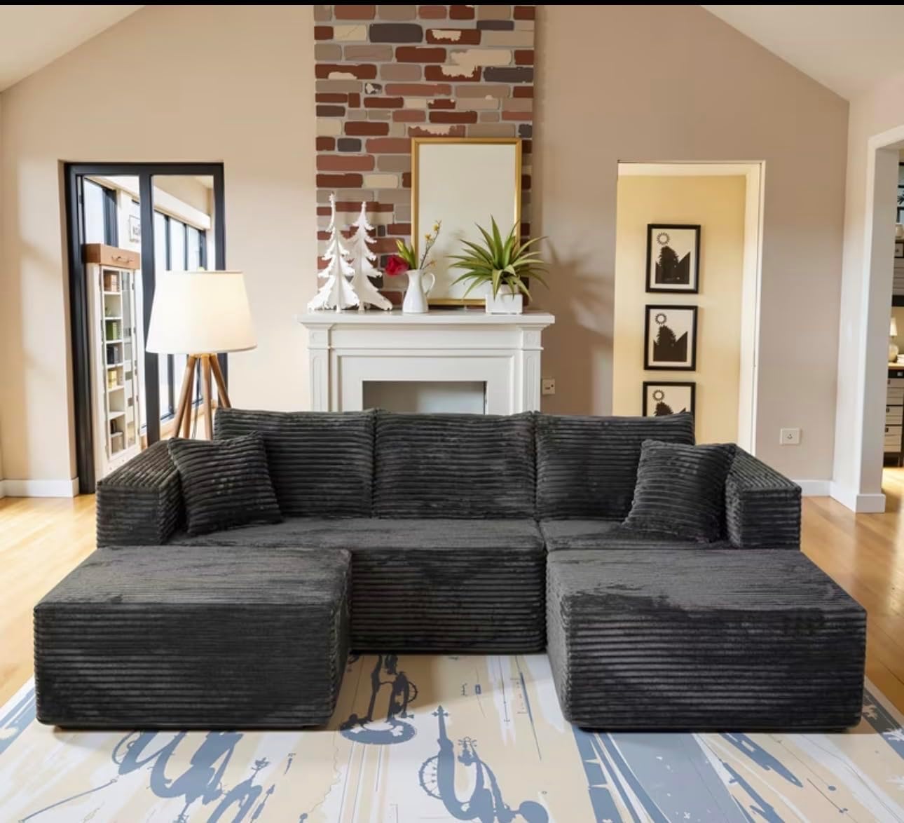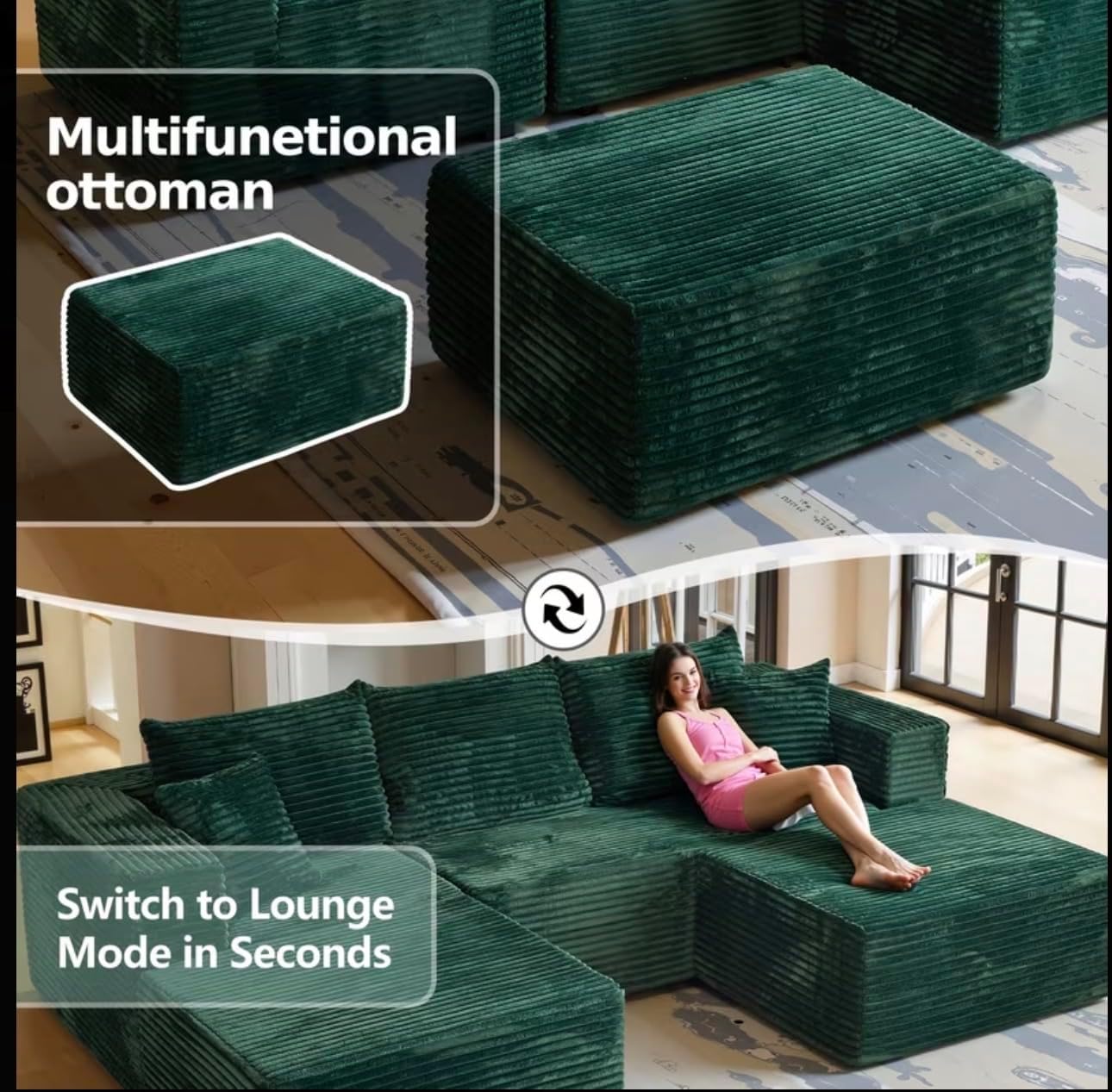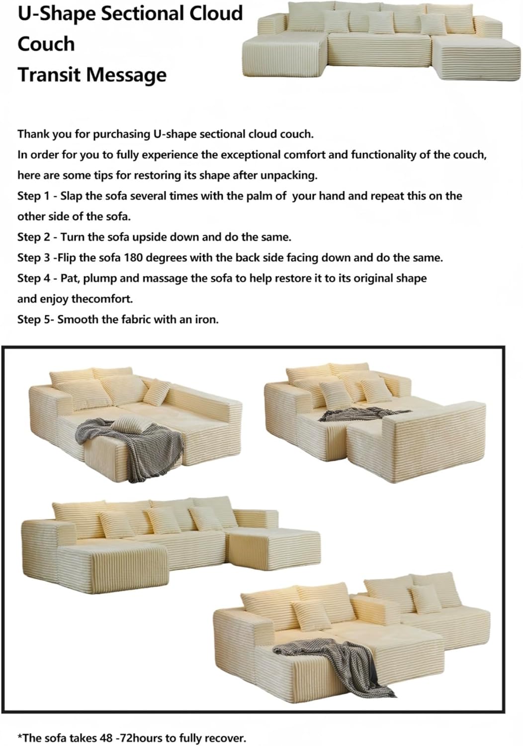 108" Cloud Sectional Couch with L-Shape Chaise & Ottoman, No Assembly Modular Sofa, Deep Seat Plush Corduroy Boneless Couched for Living Room 108x59x16 dimensions Comfortable fabric Foam inserts Easy clean Movable ottomans No assembly required