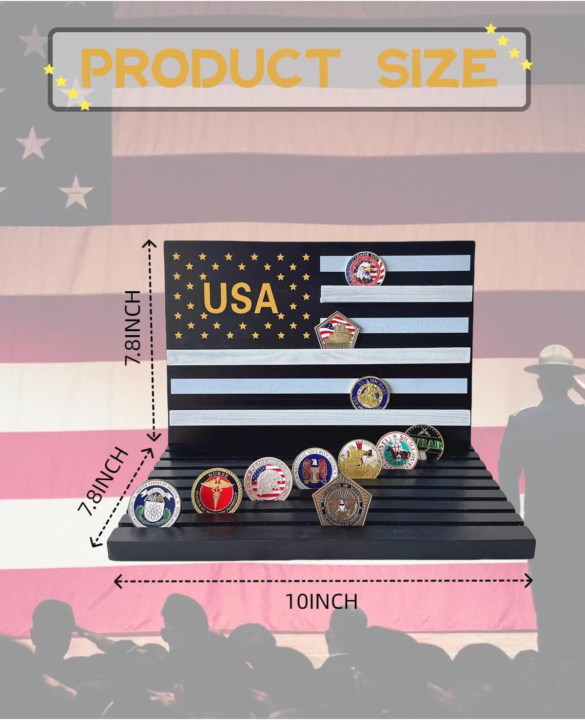 • 1. 【Multi-Branch Military & Law Enforcement Display】- Showcase Navy, Air Force, Army, Marines & First Responder Coins Crafted for ​all military branches and law enforcement, this stand proudly displays challenge coins from the Navy, Air Force, Marines, Coast Guard, and police units. Its universal design honors service across departments, making it a versatile tribute to heroes in uniform.