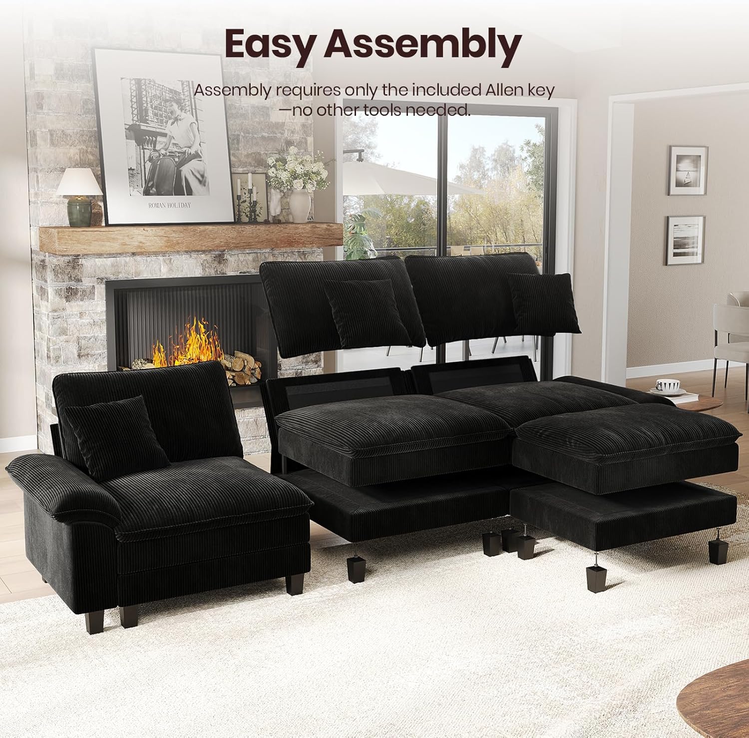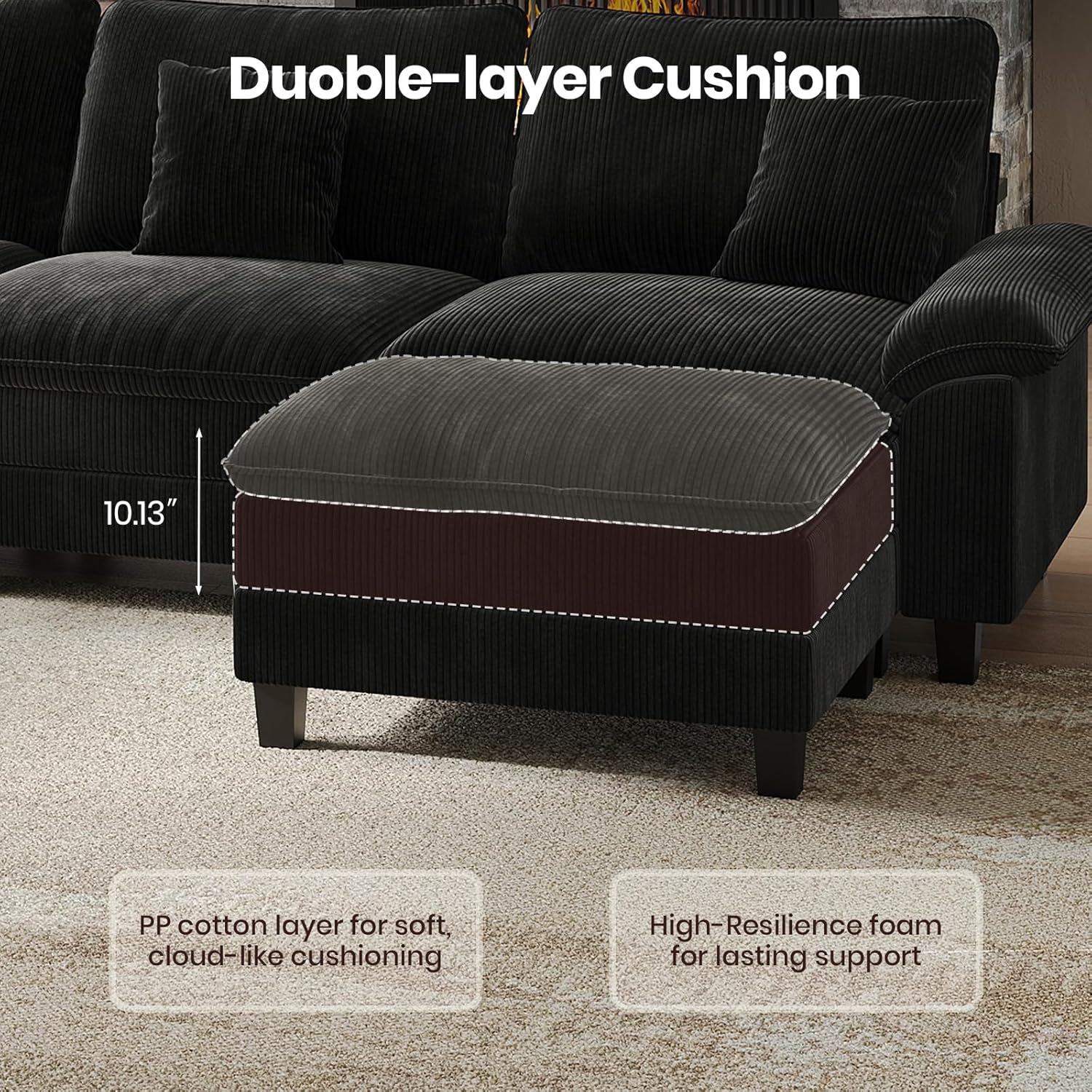 Create a comfortable and stylish living room with this modern modular sofa designed for everyday use. The dual-layer cushions combine plush softness with supportive comfort, offering comfortable seating for relaxing, watching TV, or entertaining guests at home. Balanced seat dimensions provide an ergonomic seating experience. The deep seat allows you to stretch out and lounge, while the supportive seat height makes sitting down and standing up feel natural and effortless. This modular couch works well in apartments, family rooms, and open living spaces where comfort and flexibility matter. Featuring a clean, modern silhouette, this contemporary sofa blends easily with minimalist, modern, or cozy home décor styles. Its modular design allows versatile placement, making it suitable for living rooms, lounge areas, or shared spaces. Practical details make everyday maintenance simple. Removable seat and back cushion covers help keep the sofa fresh, while soft yet durable chenille/corduroy fabric offers a breathable feel designed for daily use in homes with kids or pets. Designed for comfort, durability, and adaptable style, this modular living room sofa provides a welcoming space for lounging, socializing, and everyday living.