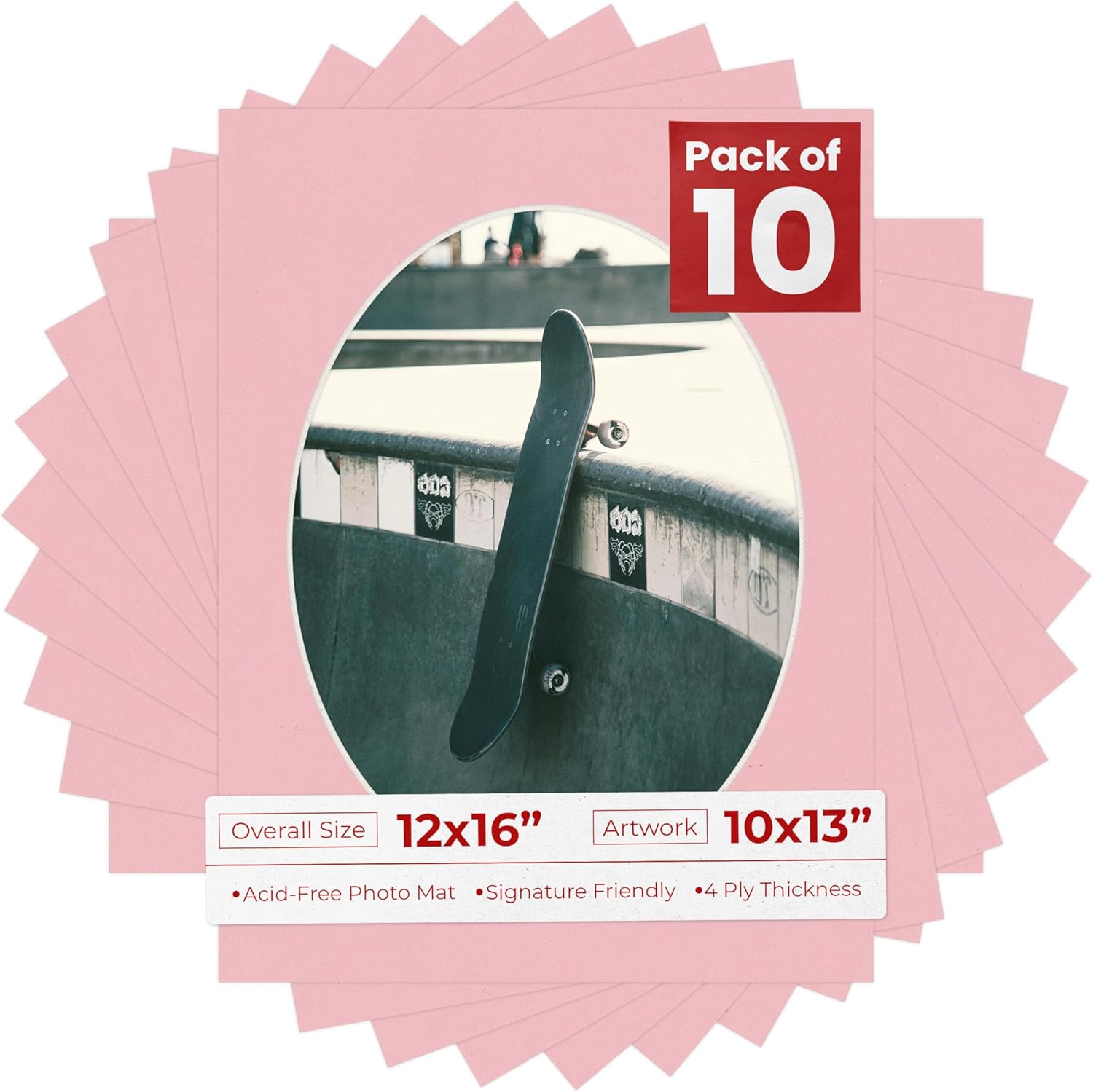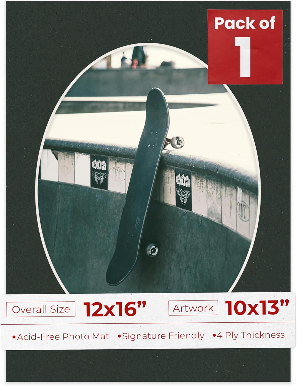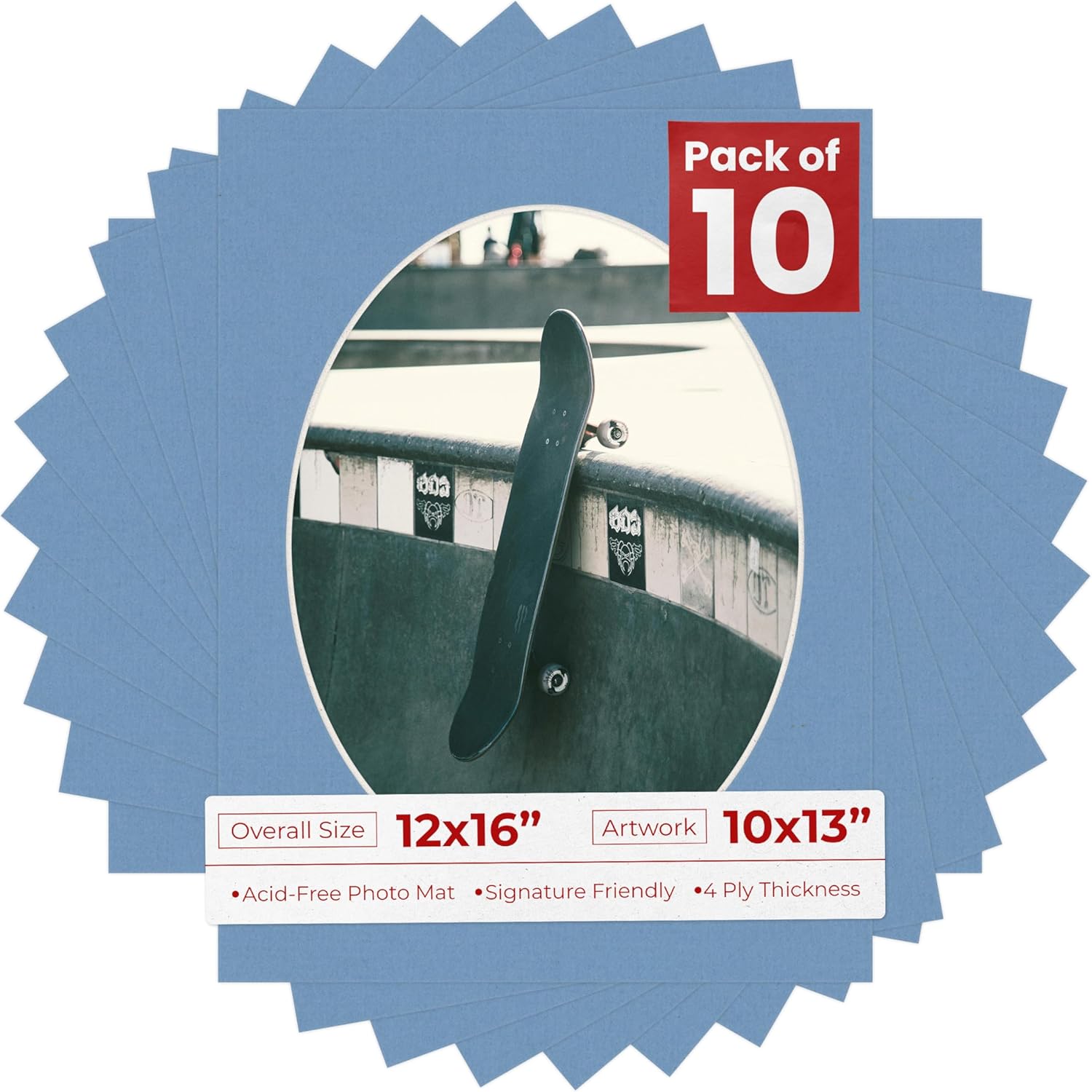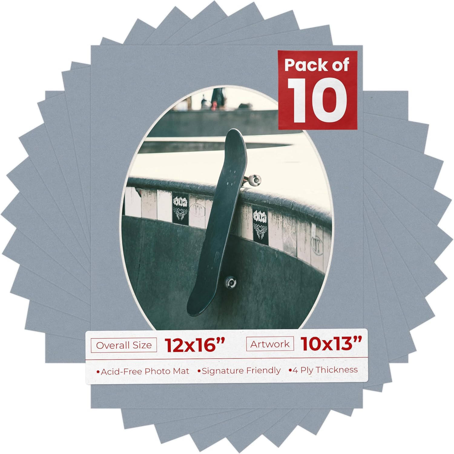 OVERALL SIZE (Made to fit a Frame Size Measuring) 12x16 Inches | Bevel Cut Oval Opening Size of 9.5x12.5 inches | For a Photo Measuring 10x13 Inches. THIS IS FOR 25 matboards show kits with acid free backings & clear bags. White linen canvas PHOTO MAT with a oval bevel cut opening. A great way to change up the look of an existing frame with a new accent mat board. This matte also works great as a replacement for damaged, dirty, or faded matting in your old frames. PREMIUM QUALITY: Our precut photo matboards are acid free & precision cut with a 45 degree bevel by machine for perfect corners and NO over-cuts every single time. All of our precut matboards are MANUFACTURED BY POSTER PALOOZA IN THE USA.