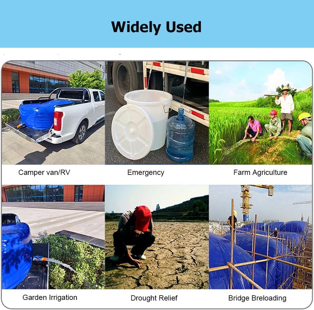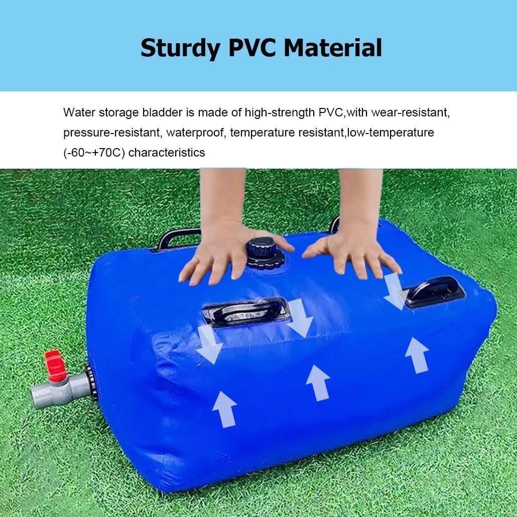 Our food grade foldable portable water tank does not take up too much storage space, but can help you solve water emergencies in various occasions; you can use it for drought relief, agricultural irrigation, camping, RV travel, firefighting, bridge preloading, sewage treatment, etcSpecification:Name: Water Bladder TankMaterial: PVCColor: BlueAdaptation Temperature: -50~+60℃Outdoor Life: 8~10 yearsCan Be Filled With Boiling Water: NoUses: Drought resistance, fire prevention, emergency waterFeature:1. Emergency water bag is designed with a proper water spout2. Water storage bladder containers is lightweight and foldable, space-saving3. The stored water has no risk of transpiration4. Small size, light weight, easy to transport and transfer5. Water storage bladder is made of waterproof PVC material6. Water bladder tank has strong anti-climate ability7. Water bag can be reused for a long time8. Suitable for: campervan, pickup truck, van, camping trailer, Rv, truckHow to maintain?1. For continuous use, please clean every 15 days2. When the water is full, if you need to move it, be sure to secure it firmly and keep it away from objectsPackage Includes:1 × Water Storage BladdersNote:1. Due to manual measurement, there may be 1-3 cm error2. The color may exist a slight difference due to different screen displays