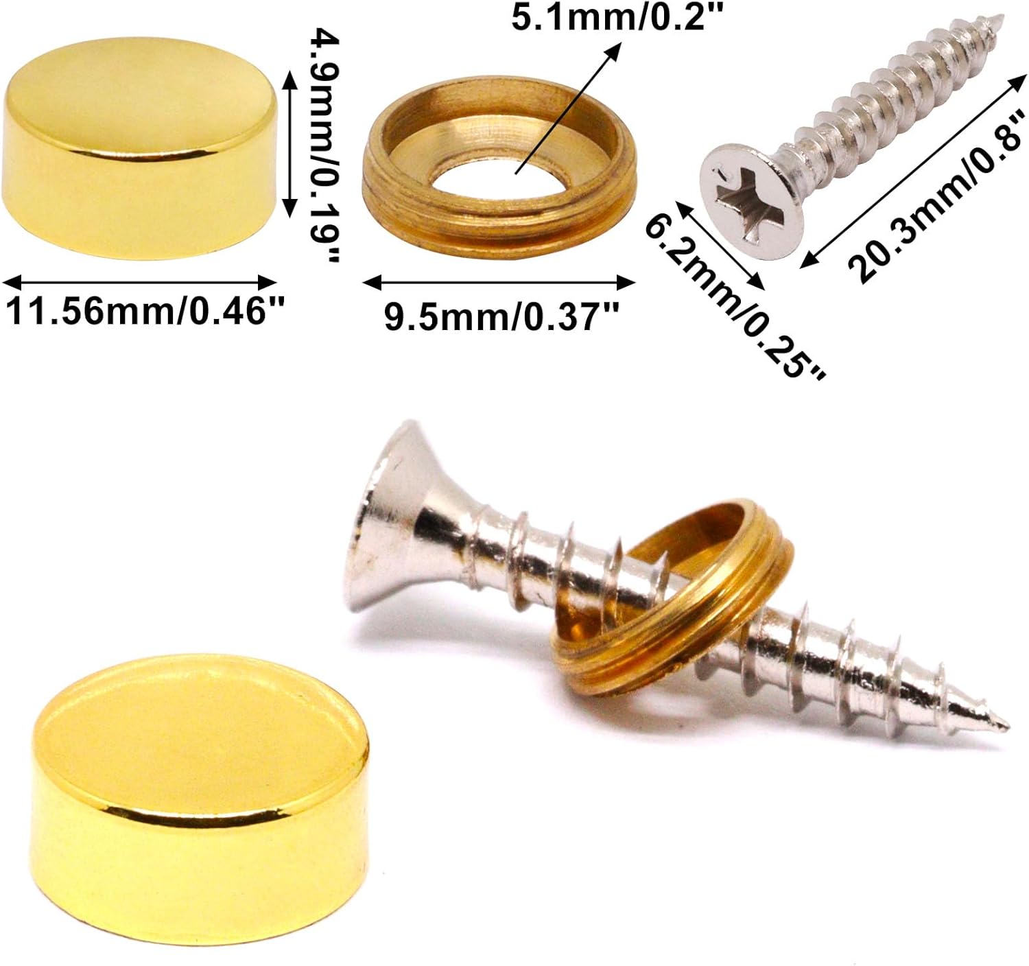 YuGtcen 16set Screw Covers Caps, Solic Brass Screw Cap Covers Gold Decorative Screws with Caps 0.47"/12mm Diameter Mirror Decorative Screws Fasteners, Upholstery Screws with Caps(10mm, Gold)