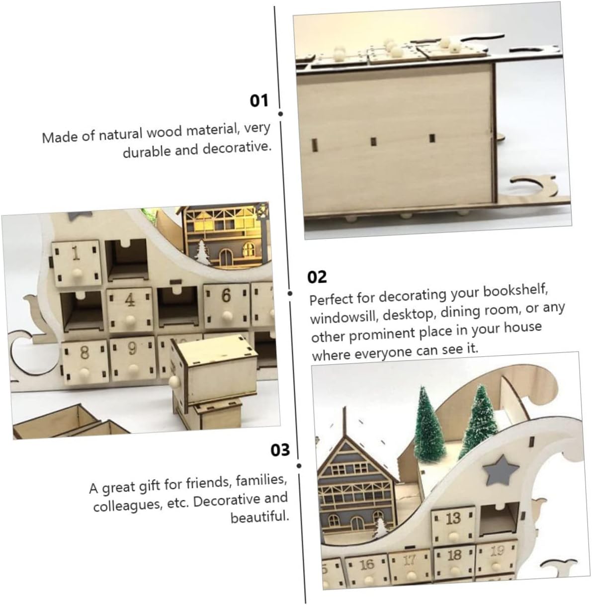 Package Include 1 x countdown Christmas calendar decor Characteristics - Size: About 28.50X20.00X8.00cm/11.20X7.86X3.14inch countdown Christmas calendar. - Color:Khaki Christmas wooden adornment. - Material: Wood wooden sled calendar crafts. - Christmas decoration for desktop, table, home, etc. during Christmas Day Christmas calendar ornament. - Made of natural wood material, very and decorative wooden Christmas decor. - for decorating your bookshelf, windowsill, desktop, dining room, or any other prominent place in your house where everyone can see it Christmas calendar decoration. - A great friends, families, colleagues, etc. Decorative and beautiful Christmas desktop ornament. - This wooden ornament with countdown calendar design fit for Christmas themed party countdown Christmas calendar.Goods Descriptioncountdown Xmas calendar for decorating your home, make a festive atmosphere, use them to beautify your table, craft displays, show window, etc.calendar Fine workmanship makes it can be used for a long time.house ornaments Manufactured of superior wood material which is and sturdy.home sled calendar decor It is a addition decoration to your home or office, living room, store, etc