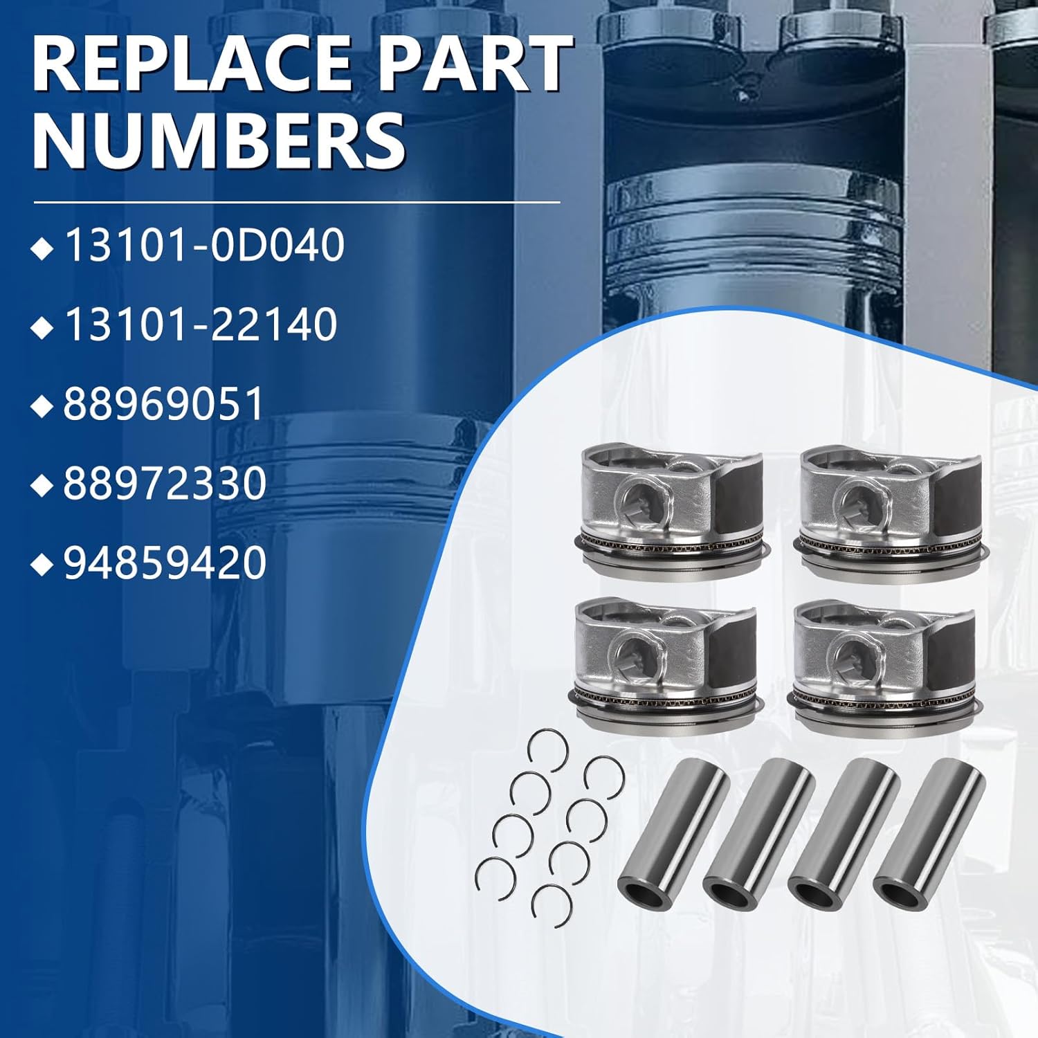 1ZZ-FE Piston Ring Set: High quality and durability Replace Part: 13101-0D040, 13101-22140, 88969051, 88972330, 94859420 Compatible Models : Fits for ENG CODE "1ZZFE" Fits for 2000-2002 PRIZM 1.8L 110CID L4 DOHC,(16 VALVE) Fits for 2003-2008 VIBE 1.8L 1794CC L4 DOHC, (16 VALVE) Fits for 2000-2005 CELICA GT 1.8L 1794CC L4 DOHC, (16 VALVE) Fits for 2000-2008 COROLLA 1.8L 1794CC L4 DOHC, (16 VALVE) Fits for 2003-2008 MATRIX XR 1.8L 1794CC L4 DOHC, (16 VALVE) Fits for 2000-2005 MR2 SPYDER 1.8L 1794CC L4 DOHC, (16 VALVE) Piston Ring Set Features: Excellent workmanship, solid and durable material Pre-shipment quality control for guaranteed quality Stable performance, easy to install You Will Get: 4pcs 1ZZFE Engine Pistons Rings Warm Tips: 1. Please check the product model carefully before purchase, the number is the same as yours 2. Please standardize the installation to ensure that the product can be well adapted to your car Our Advantages: By installing our piston rings kit, you can enhance the engine's sealing performance and compression efficiency, reducing exhaust leakage and fuel consumption while increasing power output and overall reliability. We have been committed to developing excellent auto parts products, providing customers with reliable high-quality products. And we have a professional customer service team to provide timely services to customers and enhance the shopping experience.