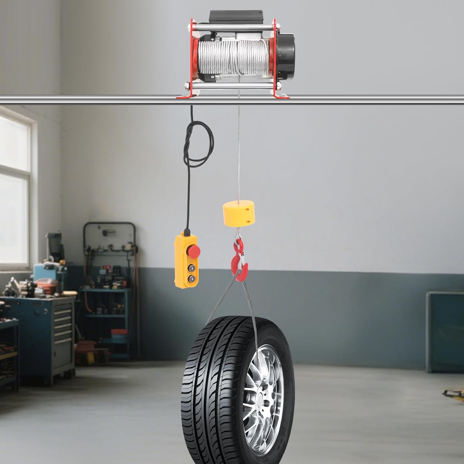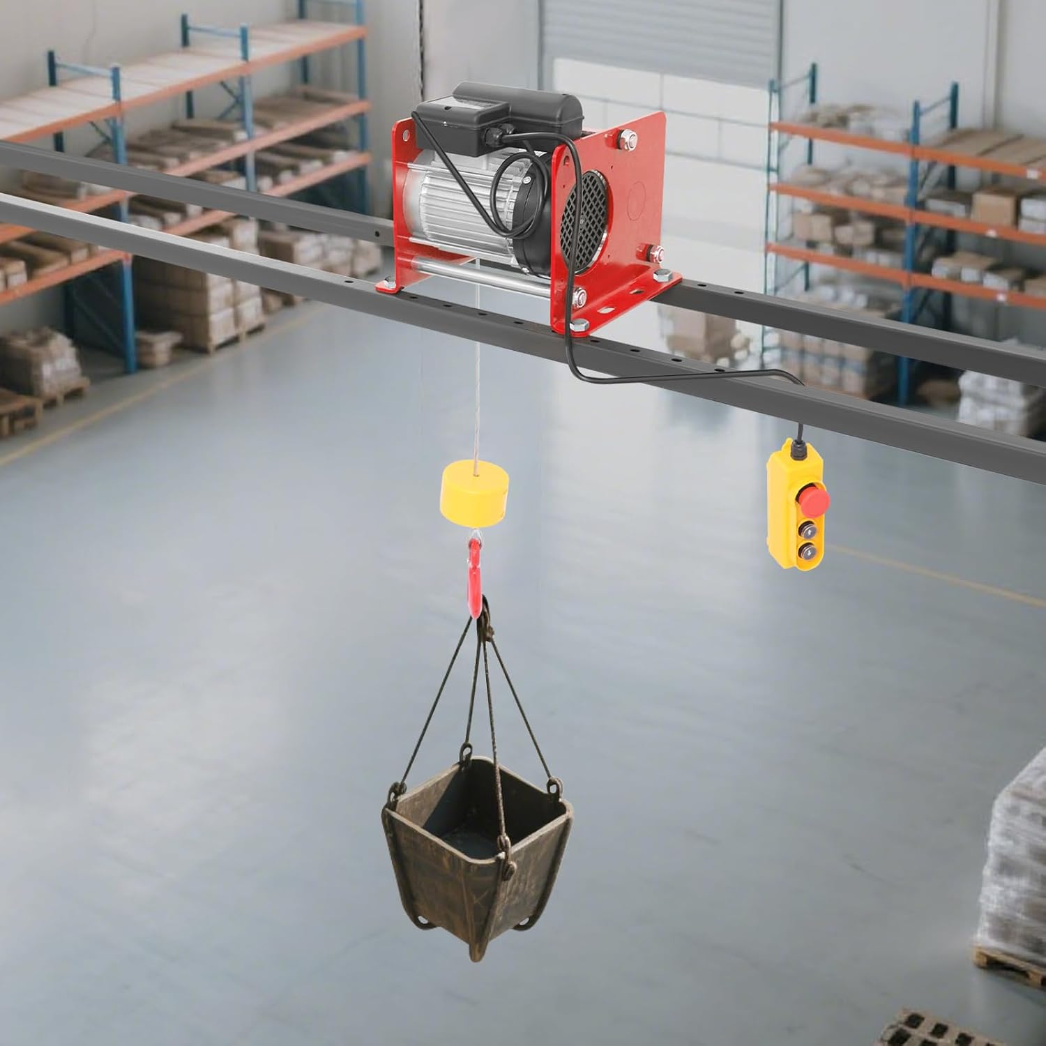 ApplicationIt can be used to lift regular or irregular shaped items such as air conditioning installation, home renovation, cargo handling, factory lifting, garages, stores, hotels, and homes, boat repair, cars, lawnmowers, golf carts, engines, boulders, and trees. SpecificationsMaterial: Carbon Steel and SteelColor: RedPlug Type: US StandardPower Source: Corded ElectricModel: PA400Motor Speed: 2800rpmVoltage: 110V/60HzMotor Power: 1KWRated Lifting Weight: 200kg/440lbs Pairs of Single Rope Line 400kg/881lbsHoisting Speed: 6-12m/19.69-39.37ft/minHoisting Height: 1-30m/3.28-98.43ftWire Length: 30m/98.43ftProduct Size: 26.5*27*25cm/10.43*10.63*9.84inPackage Size: 37*32*30cm/14.57*12.6*11.81inGross Weight: 24kg/52.91 lbsNet Weight: 22.8kg/50.27 lbsPackage Included1* Electric Hoist1* Hook1* English Manual