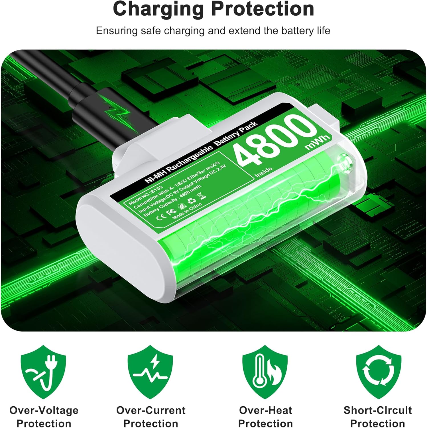 Have fun with your game: always stay in the game with the 2 packs of 3600mWh NiMH batteries + 1.5M long USB-C charging cable. The durable, rechargeable battery is fully charged after under 4.5 hours, 8-12 hours of playtime. Use 2000 times cycle, say goodbye to disposable batteries and forced breaks when gaming.