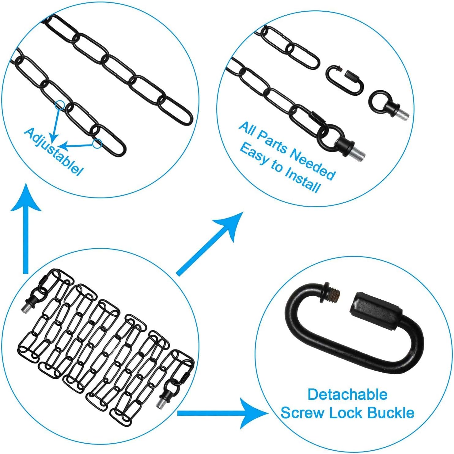| Included Components | 1 Heavy Duty Chain + 2 connection locks+ 2 Hook Rings for Light Fixture |