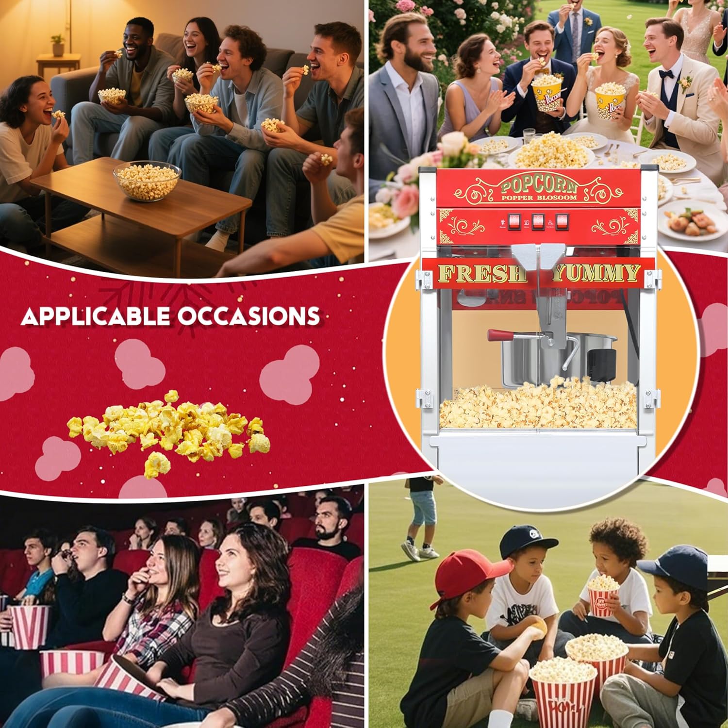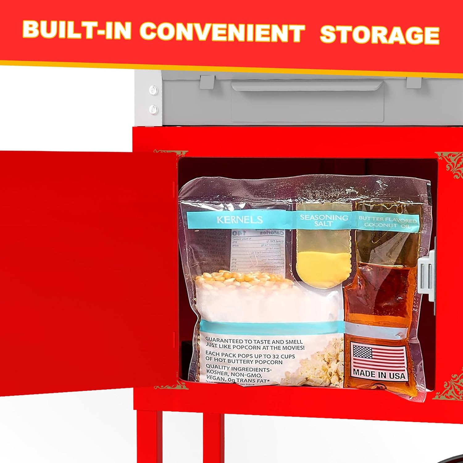 | Included Components | 1 x 20 OZ Popcorn Cart Machine on Wheels, 1 x Assembly instructions |