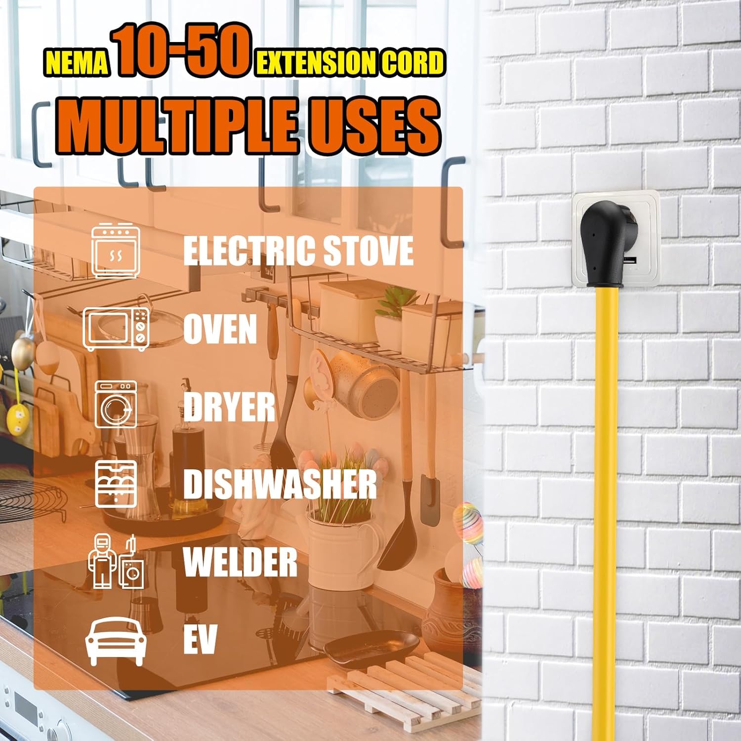 • Simplify Your Life: our 50 amp 10-50 extension cord is ideal for dryer electric range oven stove or EV charger and more, providing you with heavy duty and easy to use products; With our solution, you'll always stay connected