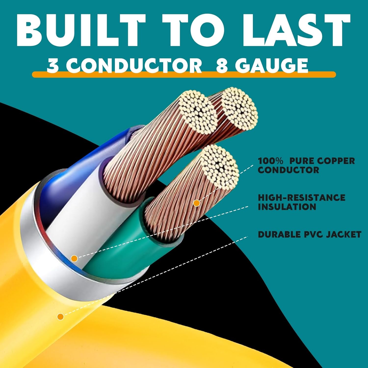 • Cable Built to Last: Our 50-amp extension cord features a molded plug, copper wire, flame-retardant, and UV-resistant materials. Its 3-conductor (8AWG/3C) construction with a waterproof jacket prevents surface oxidation, making it ideal for outdoor use. ETL listed