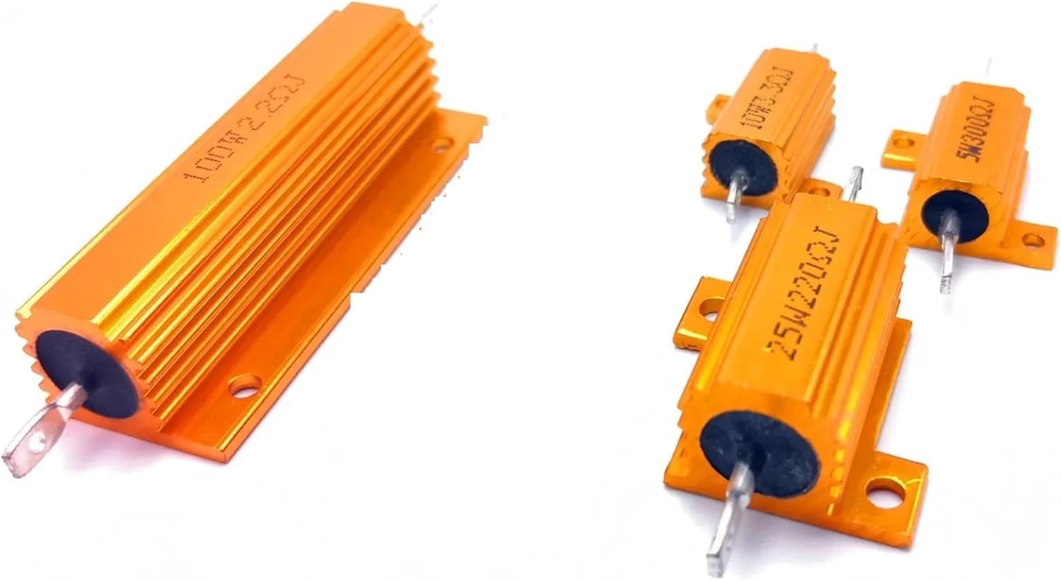 Resistor Units25W 50W 100W Aluminum Power Metal Shell Case Wirewound Resistor 0.01-100K 0.05 0.1 0.5 1 2 6 8 10 20 200 500 1K 10K ohmAccuracy : 5%Color : GoldOperating Temperature : 1Temperature Coefficient : 1Rated Power : 25W 50W 100WResistance Tolerance : 5%Package Type : Throught HoleModel Number : 25W 50W 100W Metal Shell CaseTechnology : WirewoundType : Wirewound Resistor