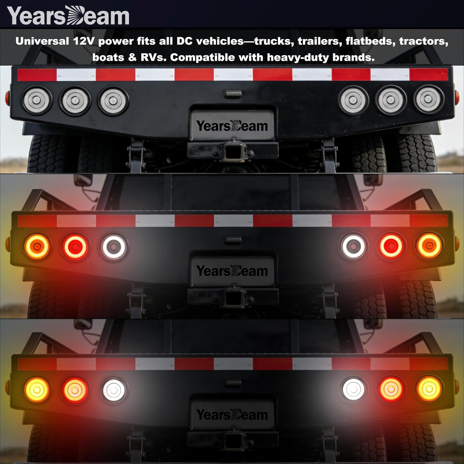 | Compatible with Vehicle Type | Compatible with trucks, trailers, semi-trailers, dump trucks, buses, boats, UTVs, vans, snowmobiles, golf carts, and more. Especially suited for heavy-duty trucks like Kenworth, Peterbilt, Freightliner, utility trucks, parade floats, and off-road vehicles. |
