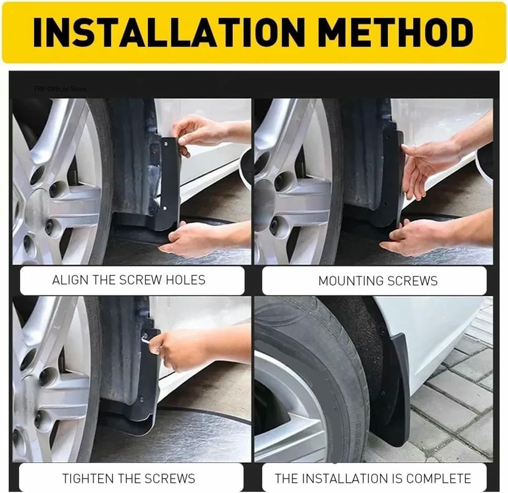 WHY DO YOU WANT TO INSTALL CAR MUDGUARDS?1.The original car lacks the protection of mudguards, and the muddy muds encountered in the rainy days will splash the car body.2.IN THE RAIN OR MUDDY ROAD, IS THE CAR FULL OF MUD?3.The body is smashed into difficult to remove stains is not very troublesome, no fenders really can not afford to hurt, muddy water, scratching paint.4.fenders effectively protect the bottom of your car from snow, salt, sand, dirt, mud, stones and other foreign objects thrown from the wheels, thus minimizing the risk of dust.Specification:Product name : Car MudguardsApplicable position: front and rear wheelsMaterial: ABS plastic【Installation instructions】:1.Please look at the back of the mud flaps. There are words showing directions:left front, right front, left rear, right rear.2.In installation, original screws of the corresponding parts in the car should be removed firstly.3.Make sure that the mud flaps are well placed to protect corresponding parts of the car.4. As for very few car models, if the original car don't have screw holes, please directly rotate our self-tapping screws into your car.【Package included】:4 x Mud Flaps(2 pcs Front L/R , 2 pcs Rear L/R)1 x a Bag Of Screw FixingsNote:1.Please check the model number in the picture and text carefully before placing an order, make sure your car model is correct