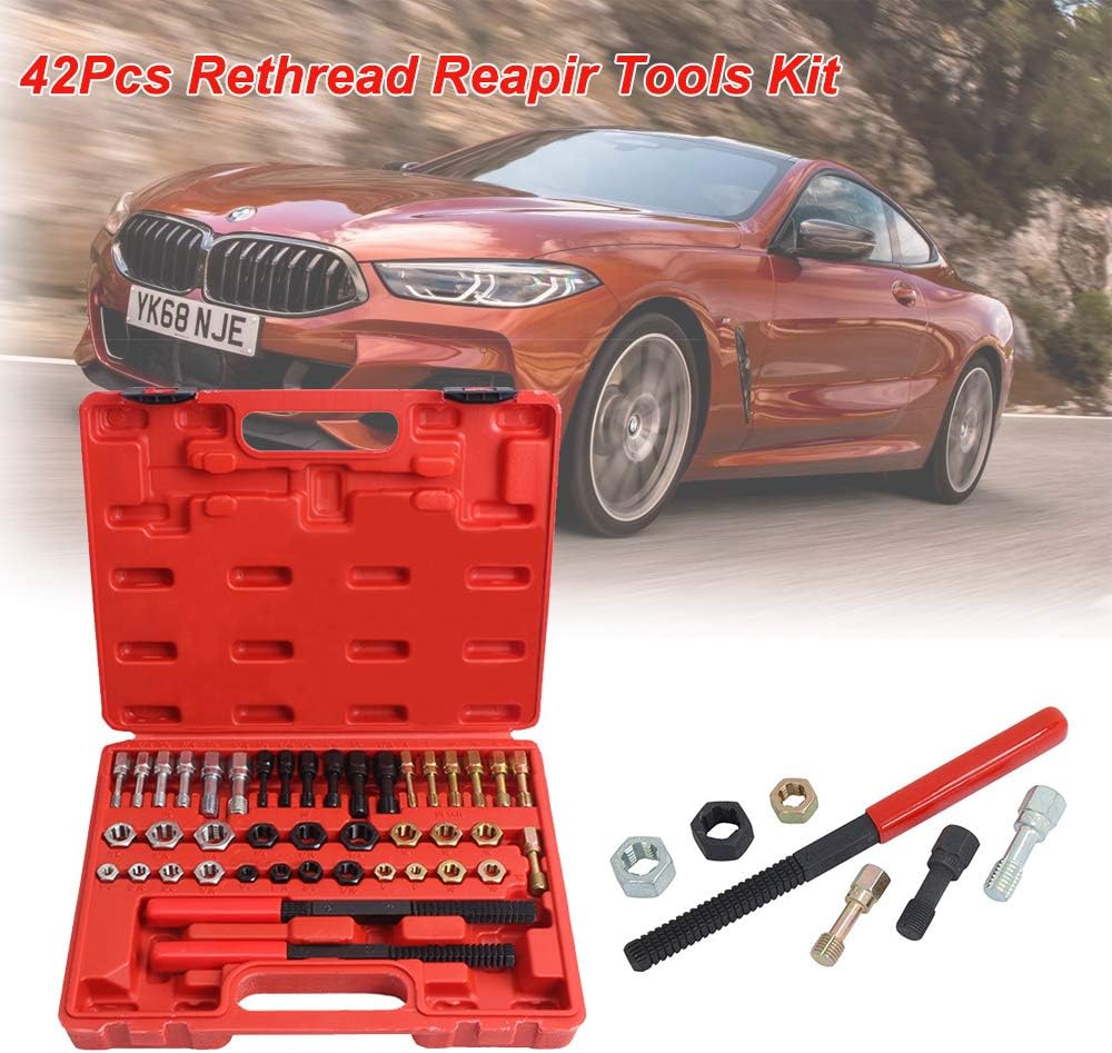 The 42pcs rethread s kit includes 1 metric file, 1 rethread file and hex rethreading s of color coded. The kit is used to damaged threads of autos. Specifications: Material: Carbon steel Package Weight: 1500g / 52.91ounces Package Size: 480 * 320 * 50mm / 18.9 * 12.6 * 1.97in 42Pcs Sizes: 21Pcs rethreader dies size: 1/4", 5/16", 3/8", 7/16", 1/2", 9/16", 5/8" UNF 1/4, 5/16, 3/8, 7/16, 1/2. 9/16, 5/8 UNC 6x1.00, 8x1.25, 10x1.25, 10x1.50, 12x1.25, 12x1.5, 12x1.75mm 19Pcs rethreader taps sizes: 1/4", 5/16", 3/8", 7/16", 1/2", 9/16" UNF 1/4", 5/16", 3/8",7/16", 1/2", 9/16" UNC 6x1.00, 8x1.25, 10x1.25, 10x1.50, 12x1.25, 12x1.5, 12x1.75mm Desction sizes: SAE file: 11, 12, 13, 14, 16, 18, 20 & 24 SAE file: 9, 10, 12, 16, 20, 27, 28 & 32 Packing List: 1 * Metric File 1 * Rethread File 21 * Rethreader Dies 19 * Rethreader Taps 1 * Lastics Box