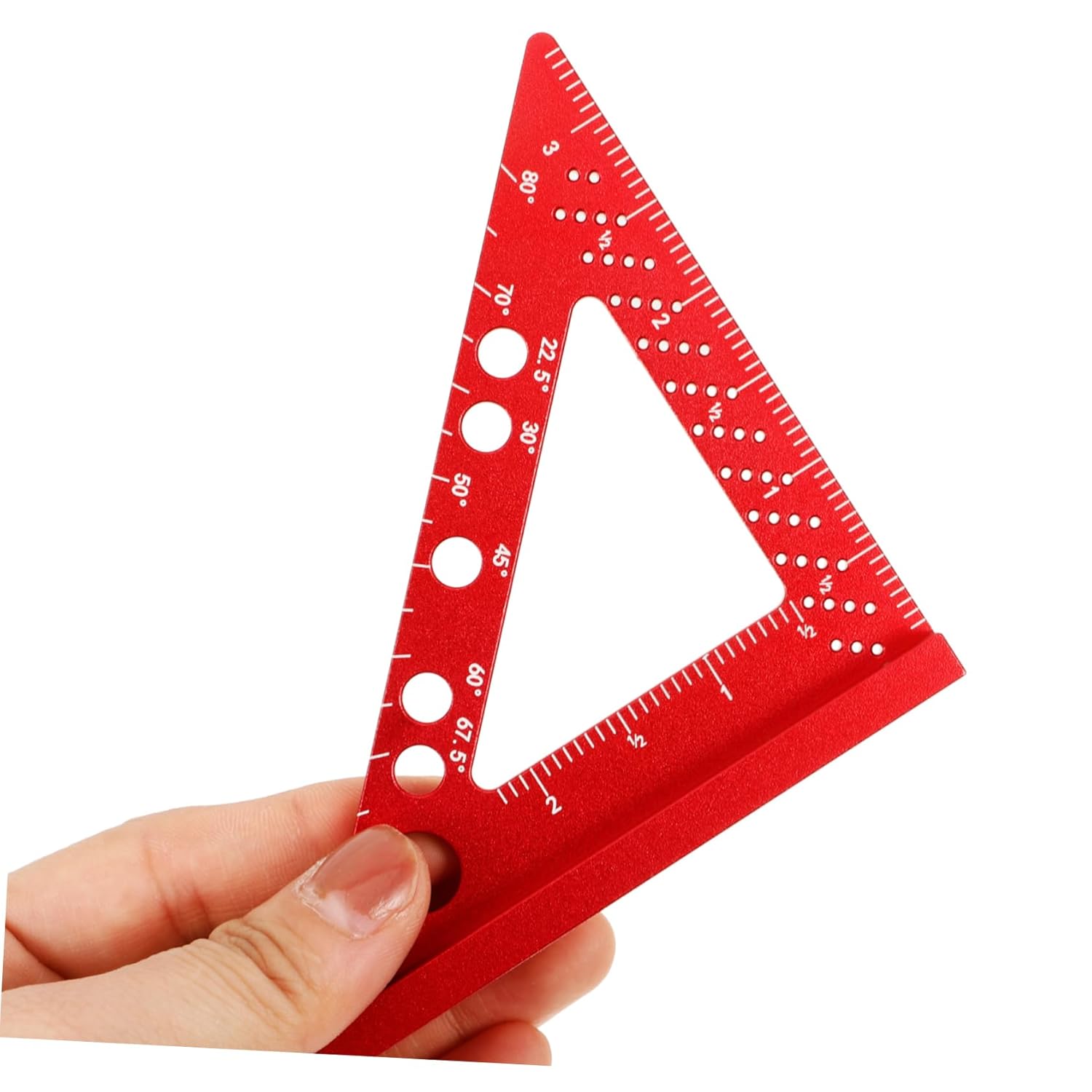 Package List 4 x Triangle Scriber(with fixture) Characteristics -Color:Red geometry rulers -Material:Aluminum woodworking ruler -Size:9.50X9.10X1.80cm/3.73X3.58X0.71in metal measuring ruler -With its sturdy construction, this tool is built to last and can withstand the wear and tear of long-term use clamping square. -Versatile tool, for measuring, drawing, and woodworking, making it a must-have for any DIY enthusiast or professional carpenter 90 degree positioning squares. -The compact and lightweight design of this tool makes it easy to carry around and use drawing triangle ruler. -The numbers are clear, which are easy to identify, and then you can read quickly and with great accuracy carpenter square. -The simple and user-friendly operation of this tool makes it for beginners who are just starting in woodworking or DIY projects metal ruler.Goods Descriptionmachinist square This carpenter square is made of stable material, which can withstand long-lasting use.small square Features the aluminum material, which has high durability, not easy to deform.measurement triangle rules This carpenter square will make the repair and fix easier and smoother.metal measuring rulers Fine workmanship, ensures practicality