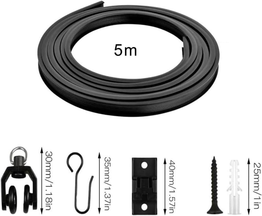 Features: Experience great in versatilities with 5 meter Flexible Curtain Track, a stylish solution for any window dressings challenge. Crafts from quality plastic and metal, this curtain track kits offer great flexibility to bend around any window shape. Great for homeowner, interior decorators, and craft enthusiasts seek a customizable and great window treatments option that enhances both privacy and decors. Transform your living space, office, or hotel; great for creating room dividers, elegant drapes, or practical shower curtains in any setting. These curtain track comes completing with smooth glides rollers and brackets, ensuring a seamlessly installation and effortlessly operate for a functional aesthetic. Specifications: Compoment: Metal and Plastic Color: Black Size: As pictures shown. Flexible Curtain Track Length: 5meter/196.85in Quantity: 1 set Note: Please allow 1-2cm errors due to manual measurement,plese make sures that you not mind before you order. Due to the differences between different monitors, the picture may not reflect the actual color the item. Package includes: 1pc 5meter flexible curtain track and 35pcs track rollers and 15pcs ceiling brackets and 15pcs harware set(screws and anchcors) and 4pcs end covers