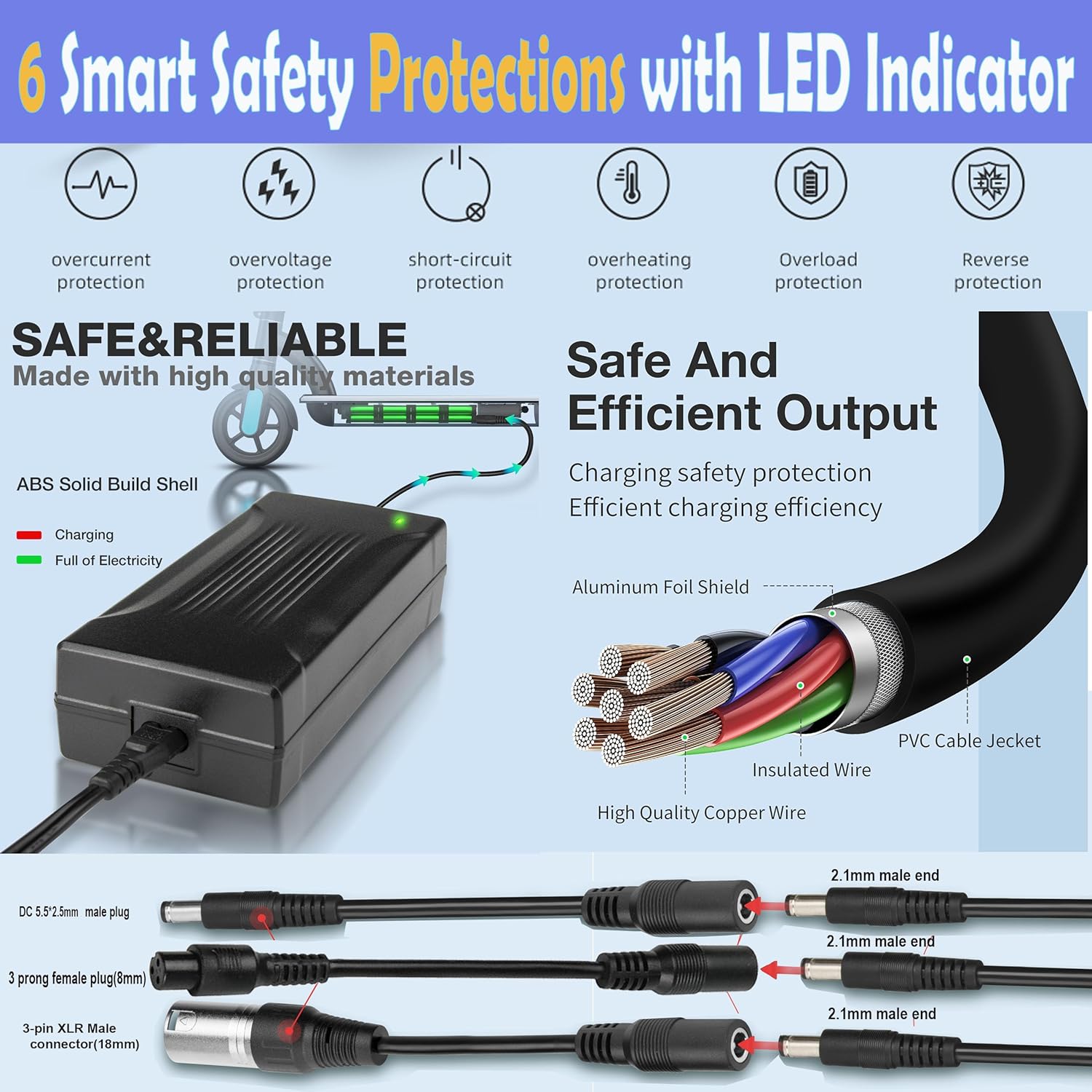 | BuiltIn Media | 1*54.6v 3a battery charger with 5525+5521 male plug, 1*AC cable, 1*8mm 3 prong female plug,1* 3 pin XLR male connector, 1*user manual |