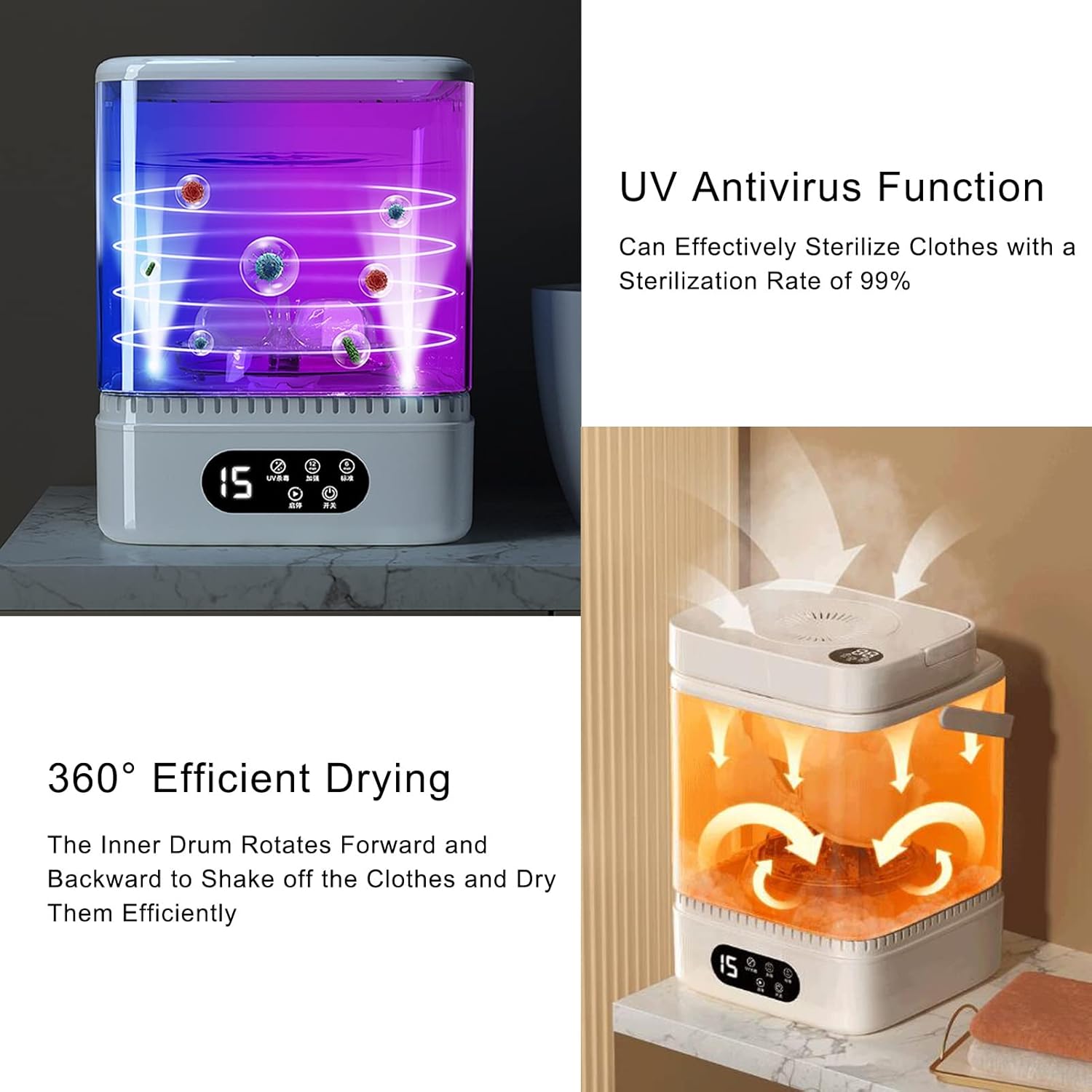 Discover the ultimate solution for your laundry needs with our Portable Washing Machine. Designed for convenience and efficiency, this compact unit is perfect for small spaces, making it an ideal choice for apartments, dorms, and even travel. Constructed from environmentally friendly ABS material, it not only offers durability but also ensures a safe washing experience. With a rated power of 24W and a 12V rated voltage, this portable washing machine is energy-efficient while delivering a powerful wash. Its 5L capacity allows you to wash up to 1KG of laundry at a time, making it perfect for personal items or small loads. The overall dimensions of 19.5*19.5*25cm (7.7*7.7*9.8in) mean it can easily fit in tight spaces, while the included replacement bucket and dryer (dimensions: 19.5*19.5*19cm / 7.7*7.7*7.5in and 19.5*19.5*4cm / 7.7*7.7*1.5in respectively) provide additional versatility for your laundry routine. Imagine having the ability to do laundry anytime, anywhere. Whether you're camping, traveling, or simply looking to save time at home, this portable washing machine is your go-to solution. Its lightweight design makes it easy to carry, while the simple operation ensures that anyone can use it with ease. Invest in a product that enhances your living experience and simplifies your daily tasks. With our Portable Washing Machine, you can enjoy clean clothes without the hassle of traditional laundry methods. Say goodbye to laundromats and embrace the convenience of washing at your fingertips. Experience the freedom of portable laundry today!