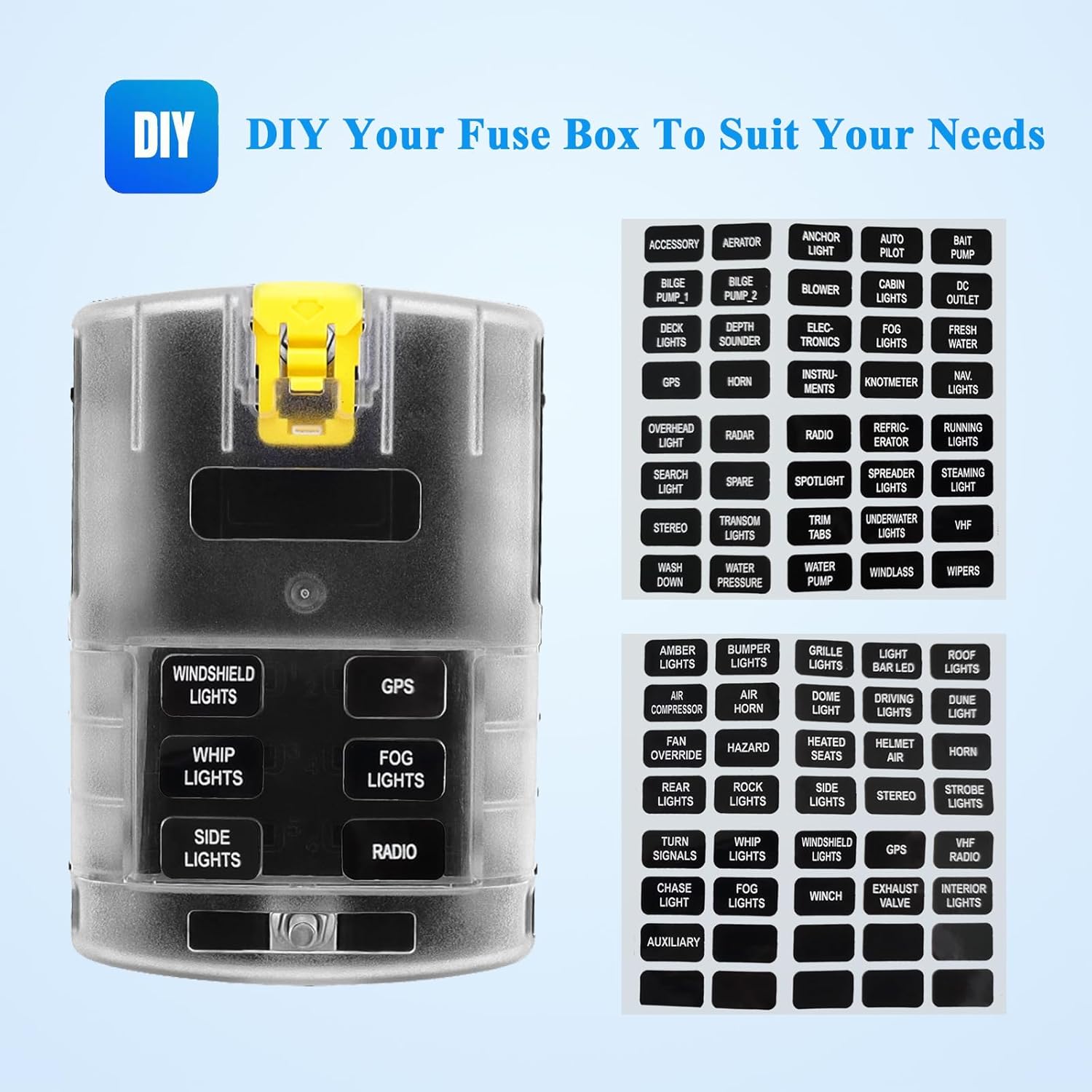 • Package Includes: 1 x fuse box, 2 sheet of stickers, 4 x screws