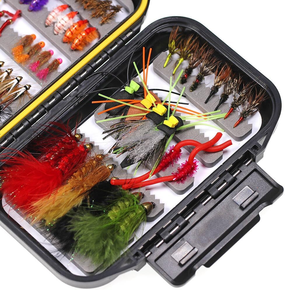 70pcs Fly Fishing Flies Assortment Kit, Dry/Wet/Streamers/Nymphs Fly Fishing Lures, Fly Assortment Trout Bass Fishing with Fly Box