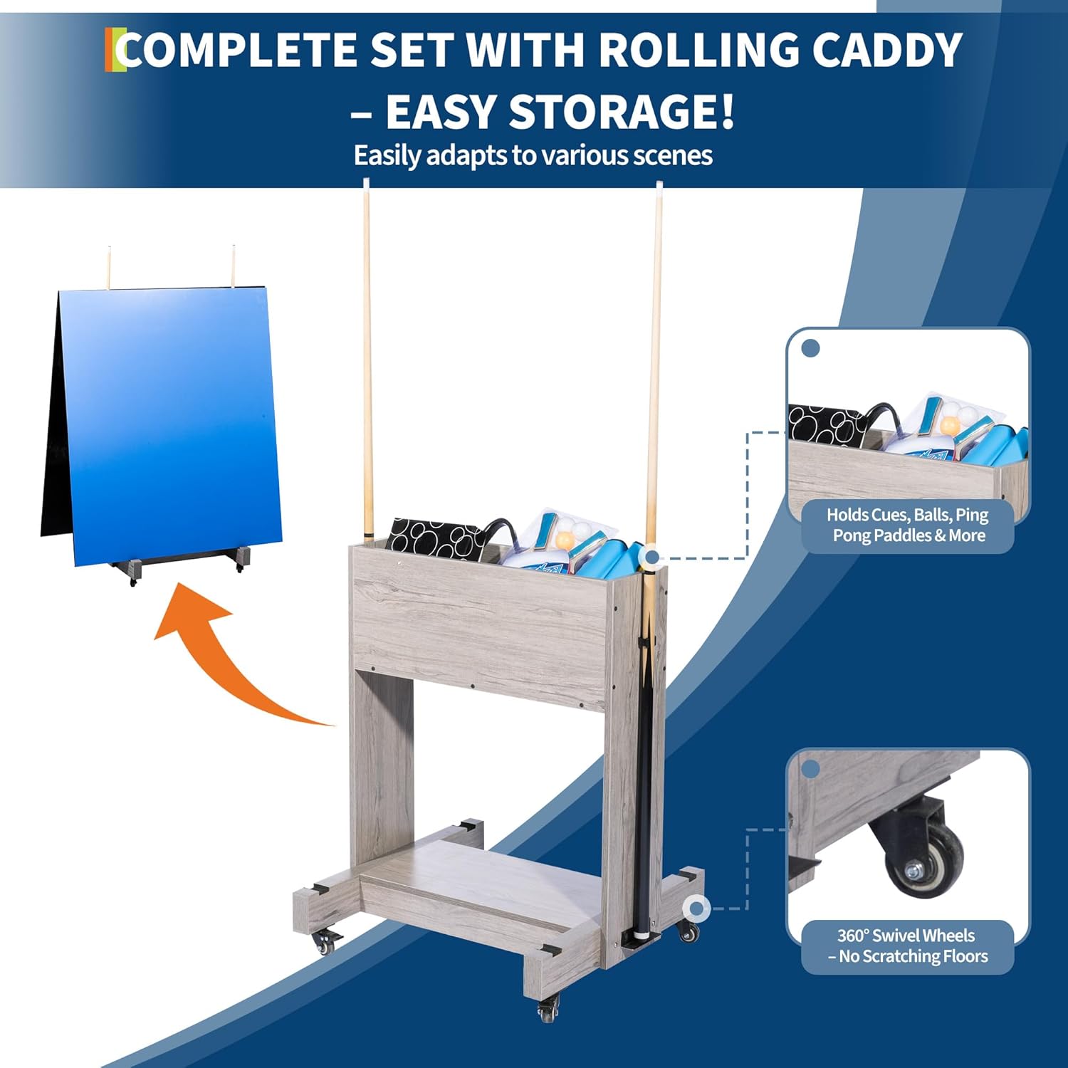 7FT 3-in-1 Pool Table with Dining Top & Table Tennis | Billiard Table Set with Accessories (Balls, Cues, Ping Pong) | HDF Wood Grain Finish | Includes Rolling Storage Caddy