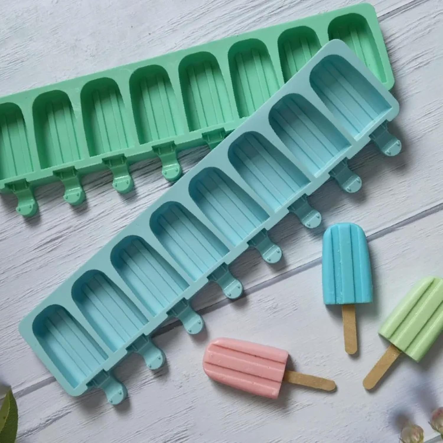 Material:SiliconeIce Cream Tools Type:Ice Cream MakersType:Ice Cream Tools(Silicone) The popsicle molds are made of silicone. The silicone is soft and the surface of the mold is smooth.(Multi Use)Because of the special material, Our product is not only for summer, but also can be used in winter. You can use it as a cake pop mold.(Easy to Clean) These ice cream mold are non-stick, and the food can be handled easily. You can wash this popsicle mold mold by hands or put them in the dishwasher after use.8 Cavities Double Groove Silicone Ice Cream Mold Oval Chocolate Cake Candy Jelly Ice Baking Mould Soap Candle Making Set Gifts