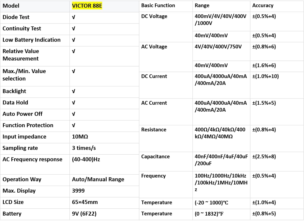| Included Components | VICTOR 88E |
