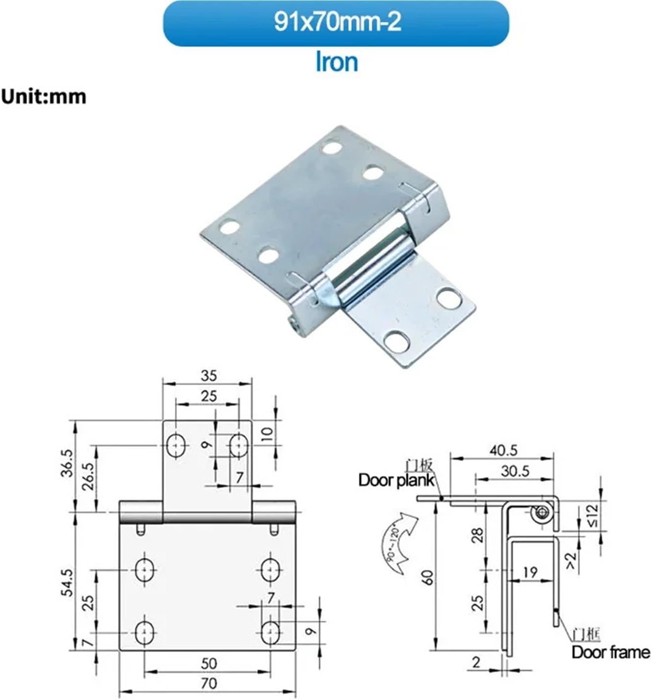 Gate Hinges90 Degree To 120 Rotating Foldable Concealed Hinge Heavy-Duty Electrical Cabinet Door 91x70mm 1PcsType : Door HingesMateria : 304 Stainless Steel/Iron
