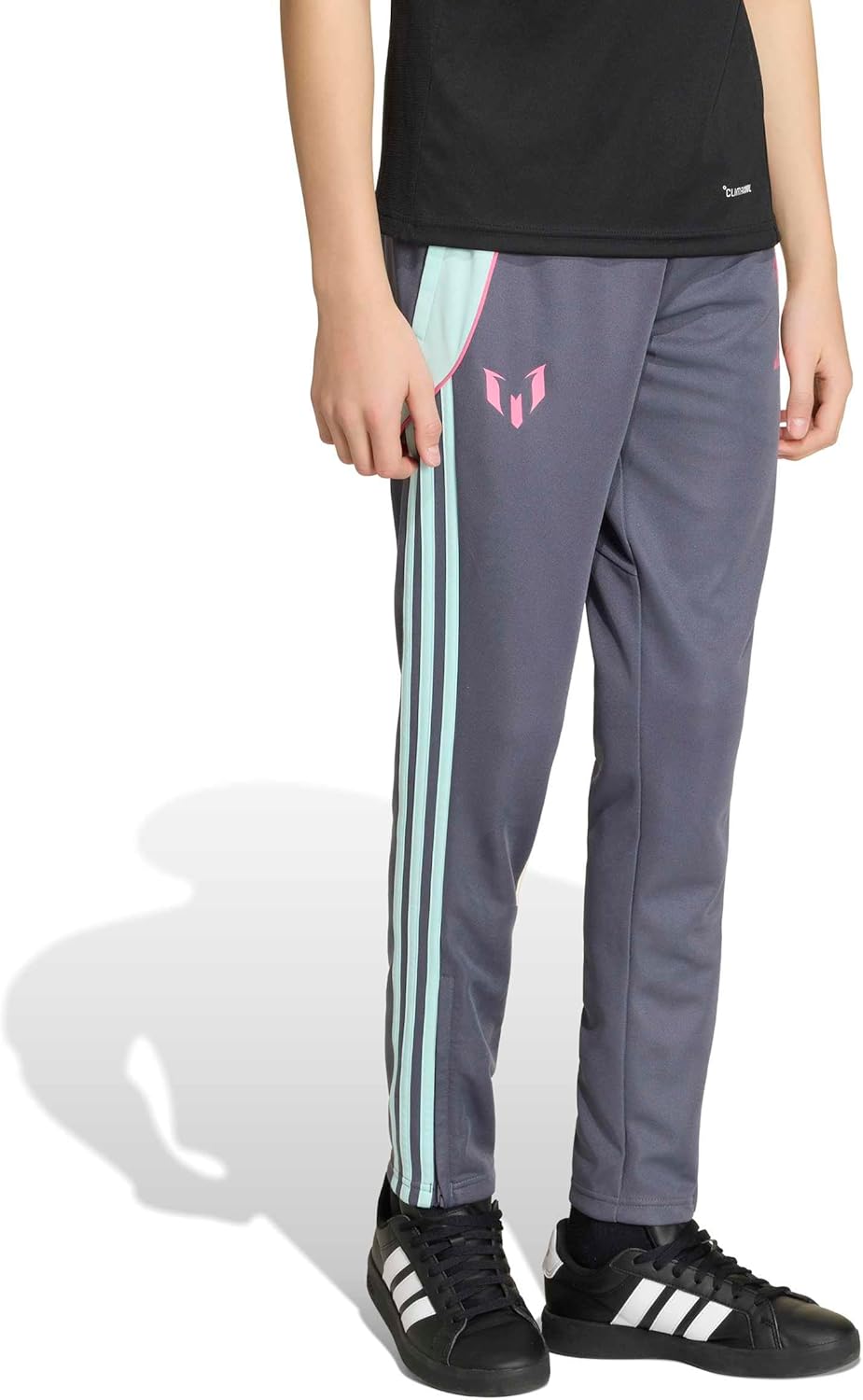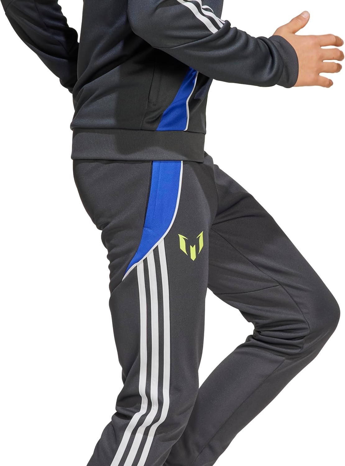 Rep your love of the G.O.A.T. in training and beyond in these juniors' soccer pants from adidas. Flashing that iconic Lionel Messi logo on the leg, they challenge you to hit or exceed your goals on and off the pitch. Zip pockets stash your essentials as you perfect your fancy footwork.