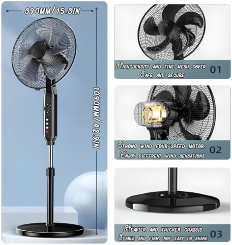 Experience a refreshing breeze in your home with our versatile standing fans, designed to enhance comfort in both small and large spaces. Featuring three adjustable speed settings, these fans provide a strong and consistent airflow, making them ideal for hot summer days. The wide-angle swing function allows for 90° automatic oscillation left and right, combined with a 30° manual tilt up and down, ensuring optimal air circulation throughout your room. Whether you're relaxing in the living room, working in your home office, or enjoying a good book in your bedroom, our fans adapt to your needs, creating a pleasant environment. With a maximum noise level of just 65dB, you can enjoy the cooling breeze without any disruptive sounds, making it perfect for use during quiet evenings or while you sleep. The mechanical control mode offers straightforward operation, allowing you to easily adjust settings to your preference. Measuring 1090x390mm/42.9x15.3in or 1120x415mm/44x16.3in, our standing fans fit seamlessly into any space, offering both functionality and style. Elevate your comfort this summer with our cooling fan, designed to bring you relief from the heat while enhancing your home atmosphere. Enjoy the perfect blend of performance and convenience with our standing fan, your go-to solution for staying cool all season long.