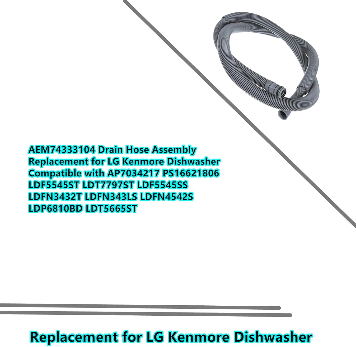 Product InformationPart Number: AEM74333104Compatible Brands: Primarily replacement for LG and Kenmore dishwashers.Replaces Part Numbers: AEM74333104, AP7034217, PS16621806Stop the leak and restore your dishwasher's reliability. Add the AEM74333104 Drain Hose Assembly to your cart today!
