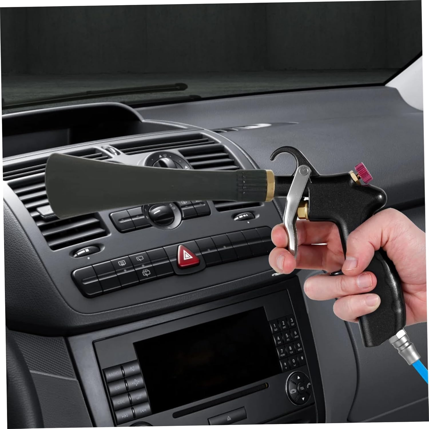 Description: Experience efficient and effective cleaning with the Air Blow Gun, a portable and powerful car interior air gun blower designed for multi-purpose use in car detailing. This versatile cleaning tool delivers strong airflow to remove dirt and dust from surfaces like dashboards, seats, vents, and more. Its ergonomic design ensures comfortable use during prolonged cleaning sessions, while its stable construction guarantees long-lasting performance. Lightweight and compact, this air gun blower is easy to carry and store, making it an essential tool for maintaining a spotless car interior anytime, anywhere. Perfect for both professional detailers and personal use, this multi-purpose car detailing cleaning tool is a must-have for anyone looking to keep their vehicle clean and dust-free with ease. Features:. Air Blow Gun. -Color: black. -Material: zinc alloy. Note:Manual measurement, please allow slight errors on size.The colors may exist slight difference due to different screens. Package Including 1* Air Blow Gun2* Nozzle