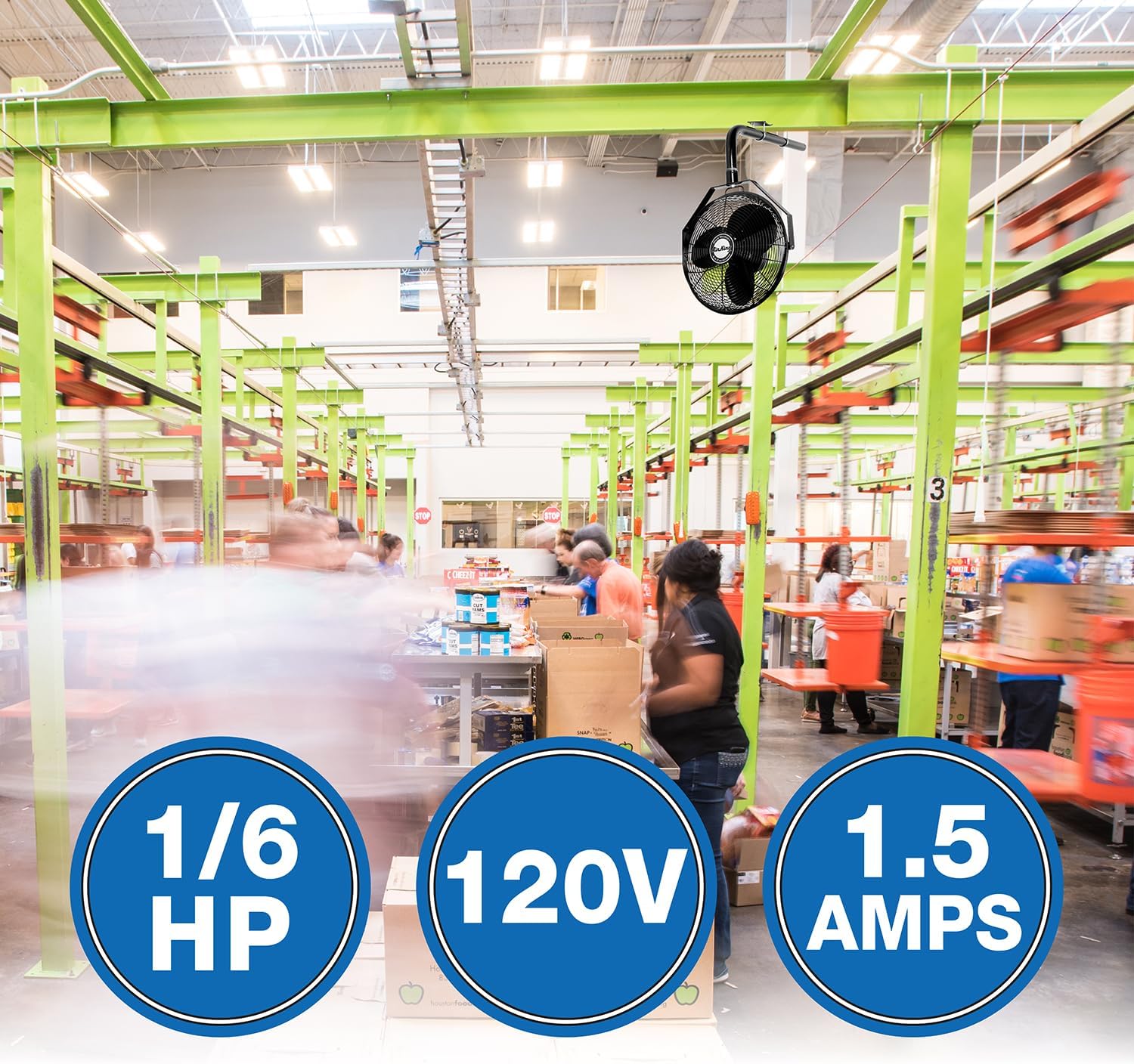 | Special Features | 18" Fan Blade, 1/6 Horsepower, 3 Speeds, Pivoting Fan Head, Powder Coated Steel Blade, Guard and Mounts, High Velocity |