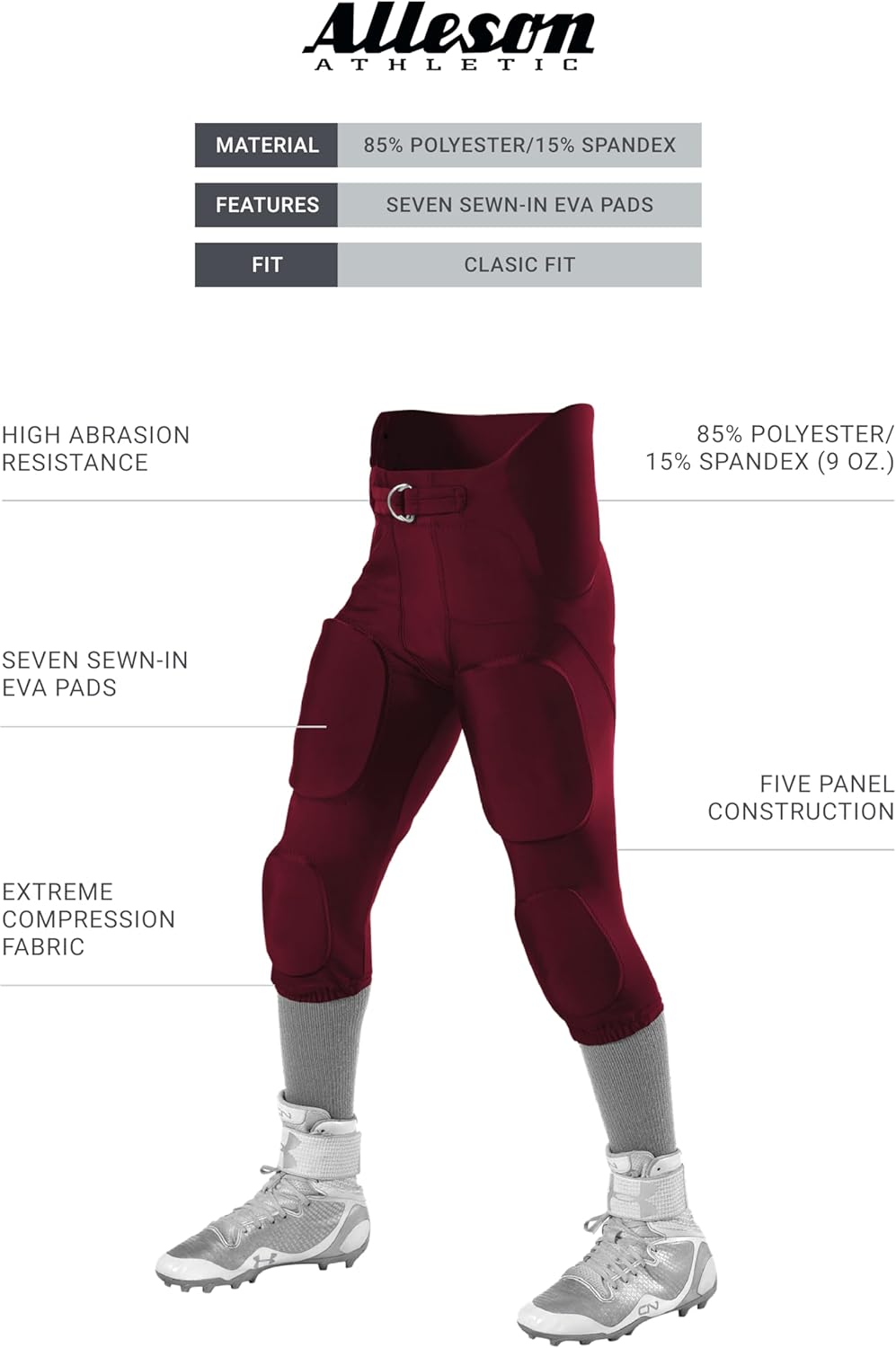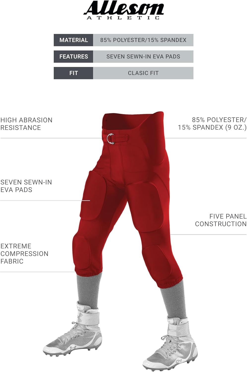 Youth Integrated Football Pant.Alleson Athletic was founded in 1933 (during the Great Depression) in Rochester, New York. The company was started by Abe Levine, an immigrant cap maker, and his son, William. Today, Alleson Athletic is the largest manufacturer of in-stock uniforms and the preeminent manufacturer of sublimated garments.