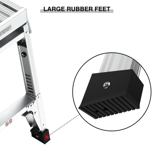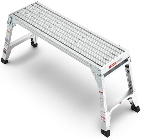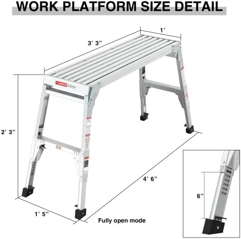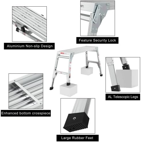 "Elevate your work experience with the Guo Baitur Aluminum Work Platform – a large size step stool and folding portable work bench designed for durability, safety, and versatility. This work platform is built to last with galvanized connecting frames, reinforced diagonal braces, and crossbeam supports, ensuring stability and durability for various tasks. The platform is equipped with thickened aluminum profiles and non-slip foot pads, providing a secure and stable working surface, even in challenging conditions. Its innovative telescopic leg design allows each of the four legs to independently extend, making it easy to adjust on uneven surfaces and ensuring stability and safety during use. Whether you're tackling indoor renovations, car washing, camping adventures, or any other task requiring elevated access, this work platform is your go-to solution. Plus, its foldable design allows for effortless storage in your trunk or storage space. Despite its robust construction, the platform is lightweight and portable, making it easy to transport and set up wherever you need it. Trust Guo Baitur for your work platform needs and enjoy the perfect blend of strength, safety, and convenience. Make a statement with the Guo Baitur Aluminum Work Platform today!"
