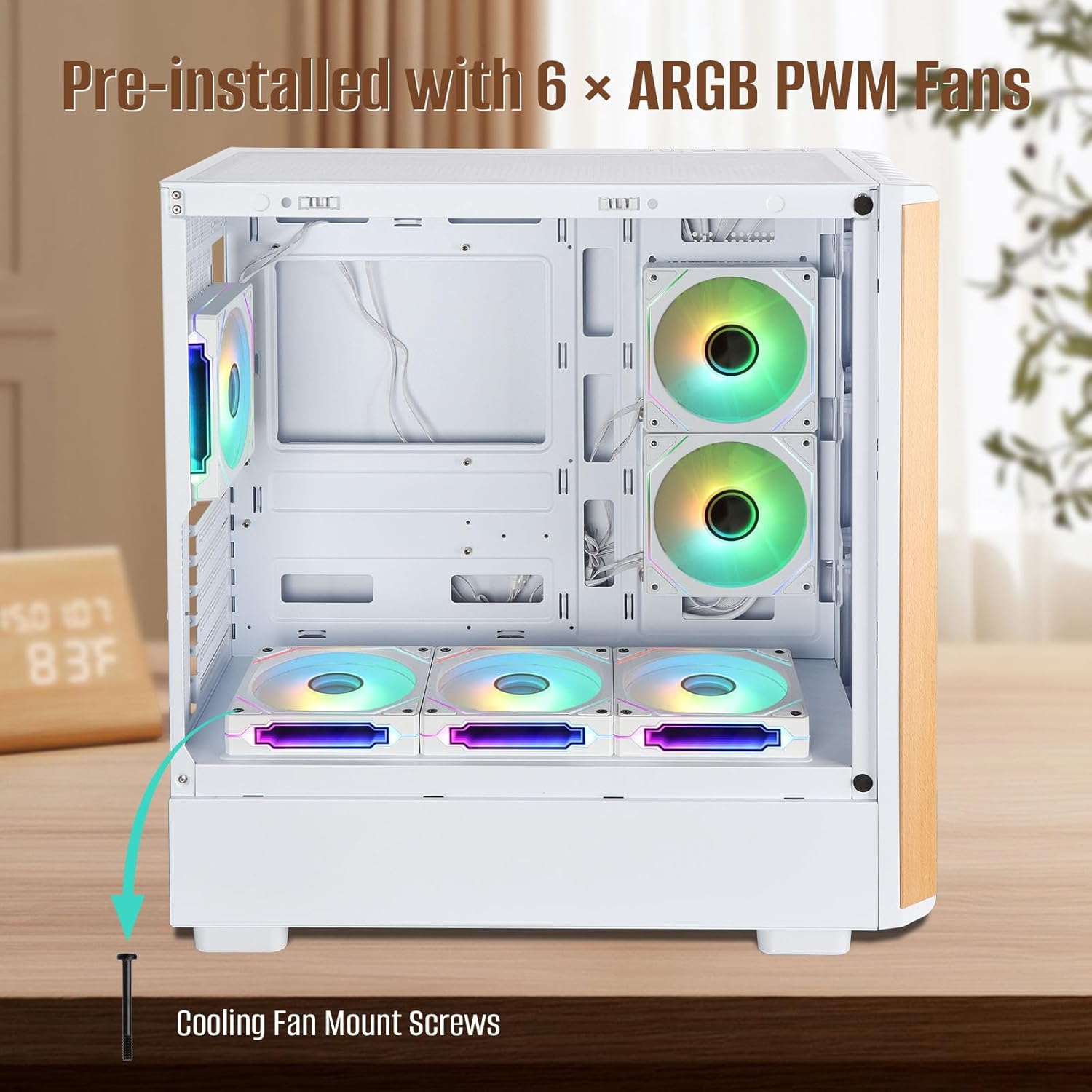 | Other Special Features of the Product | Built-In 6 ARGB PWM Fans, Dual Chamber, Dust Filter, Solid Wood Front, Tempered Glass Side Panel |