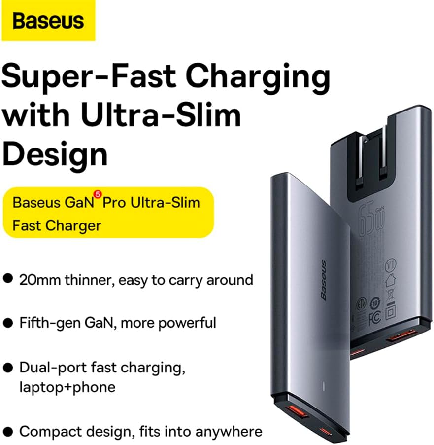 Baseus Gan5 Pro Ultra-Slim Fast Charger - Grey
