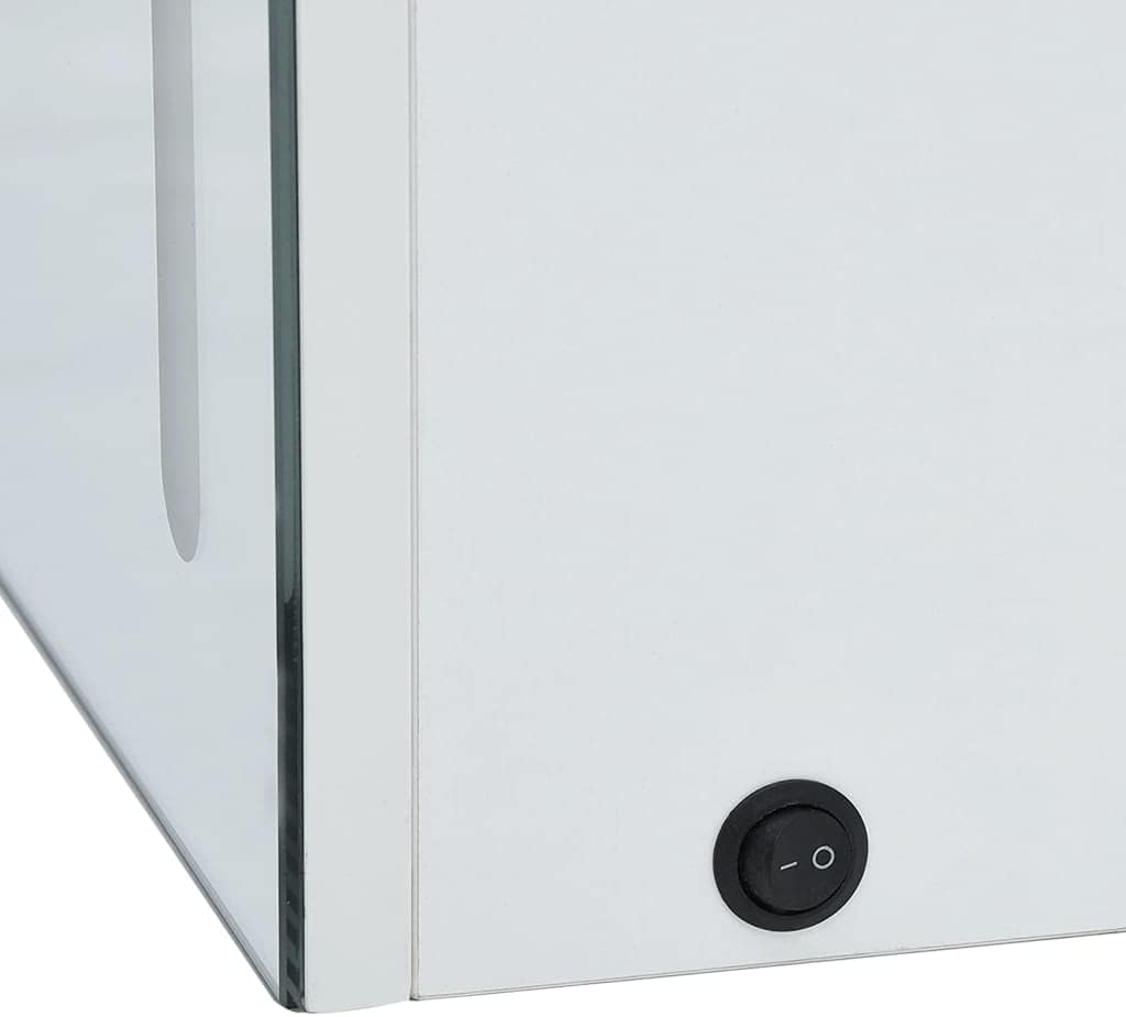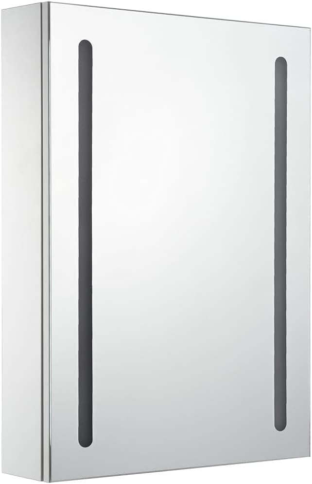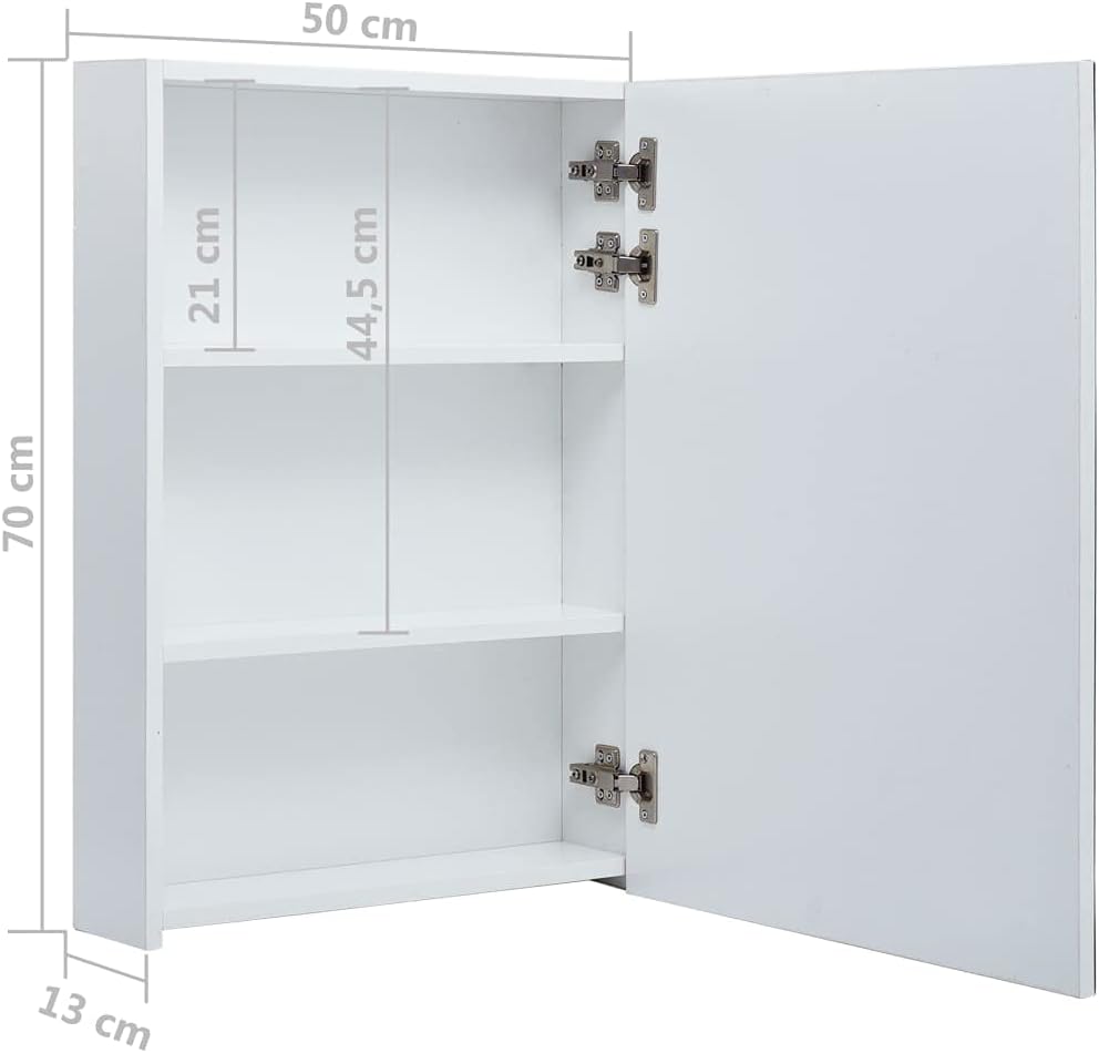 Bring an aesthetic touch to your bathroom with this LED mirror cabinet! This wall mirror cabinet with LED adds a touch of modern style and soft light to any room! It is made of a high quality MDF board with melamine finish, which ensures long-term use. With the two energy-efficient LED light strips, you can see yourself in the best light while make-up, grooming and skin care and illuminate your room, face and smile. Inside there are 3 storage compartments that provide ample storage space for all your toiletries and beauty accessories. You can easily turn the light on and off with the bottom button. This stylish and functional cabinet is sure to make your interior design extraordinary. The cabinet can be easily mounted on the wall. Colour: white and silver. Material: MDF in melamine finish, glass mirror. Dimensions: 50 x 13 x 70 cm (W x D x H). Cable length: 1 m. Interior features 3 shelves for toiletries and makeup accessories Buffer strap for gentle opening and closing of the door. On/off switch at the bottom.