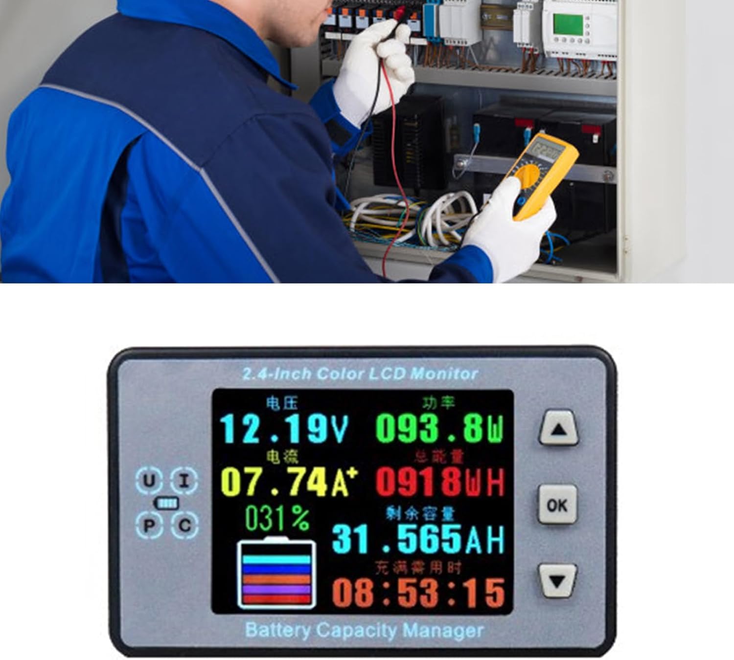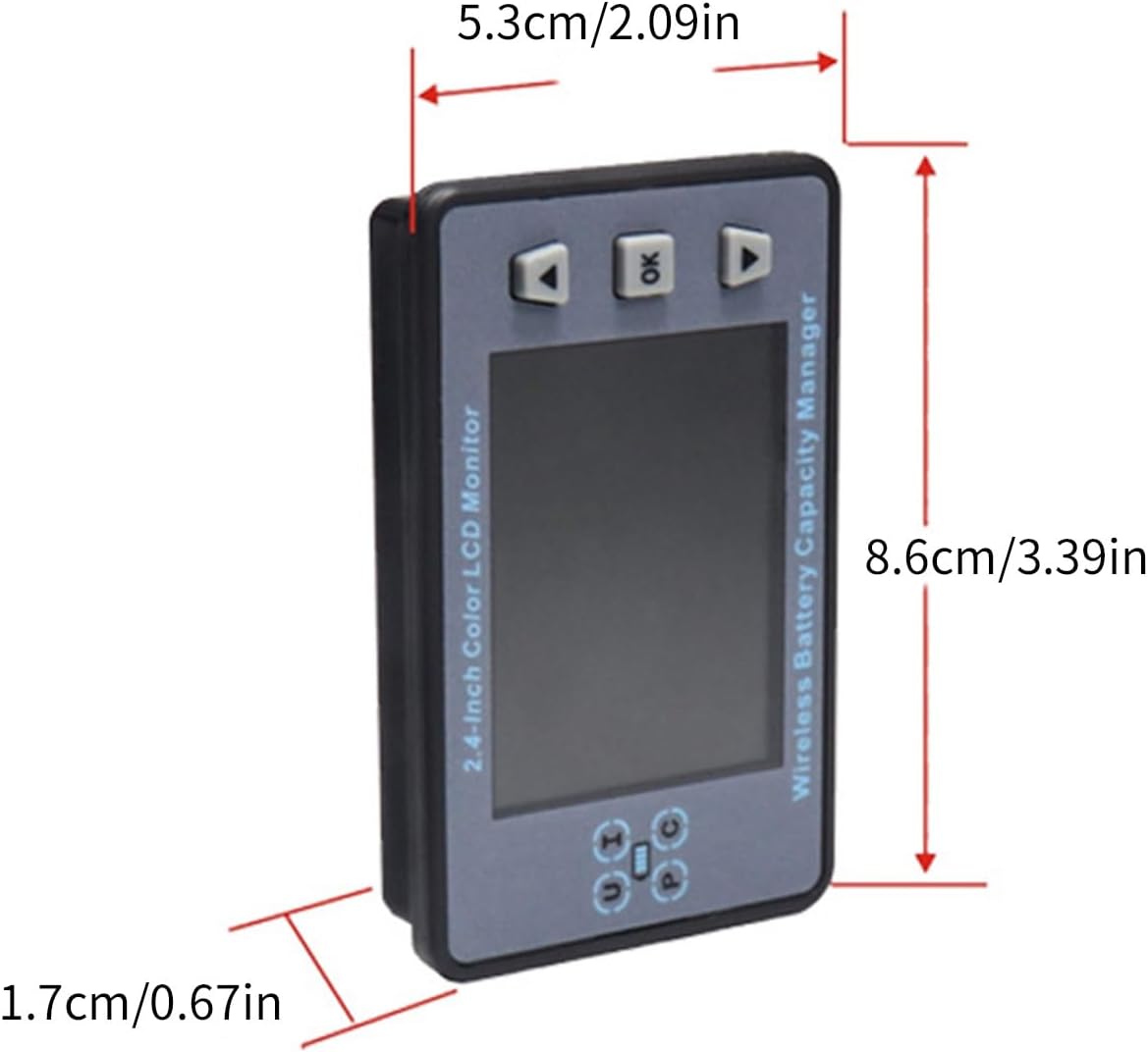 Battery Capacity Cart Meter With 2.4Inch Digital Display Gauges Voltmeter TestFeatures:Display of current, power, residual capacity, use of time a variety of physical parameters.2.4inch LED digital display: The display data is comprehensive, clear, easy to observe, and the reading is clear.User who detect charging and discharging can easily detect bidirectional current without changing the wiring direction.ABS is used, which have characteristics such as resistance and highs temperature resistance. The PVC flame-retardant housing is safe and Wide applications: suitable for electric bike testing, battery monitorings, battery testing, power equipments testing, Specifications ABS DC8-100VCurrent: 0.02~100A ,0.04~200A ,0.06A~300A ,0.1A~500A (optional)Capacity: 0.1AH~99999AHPower value: 50KWCommunication bauds rate: 9600bpsMeasurement rate: 20times/secondSize:Approx.53mm/2.08''x86mm/3.38''x17mm/0.66''Cable Length:Approx.3meters/118''Package Includes:1Set Battery Capacity TesterNote:Please allow 1mm errors due to manual measurement. Due to the differences between different monitors, the picture may not reflect the actual color.