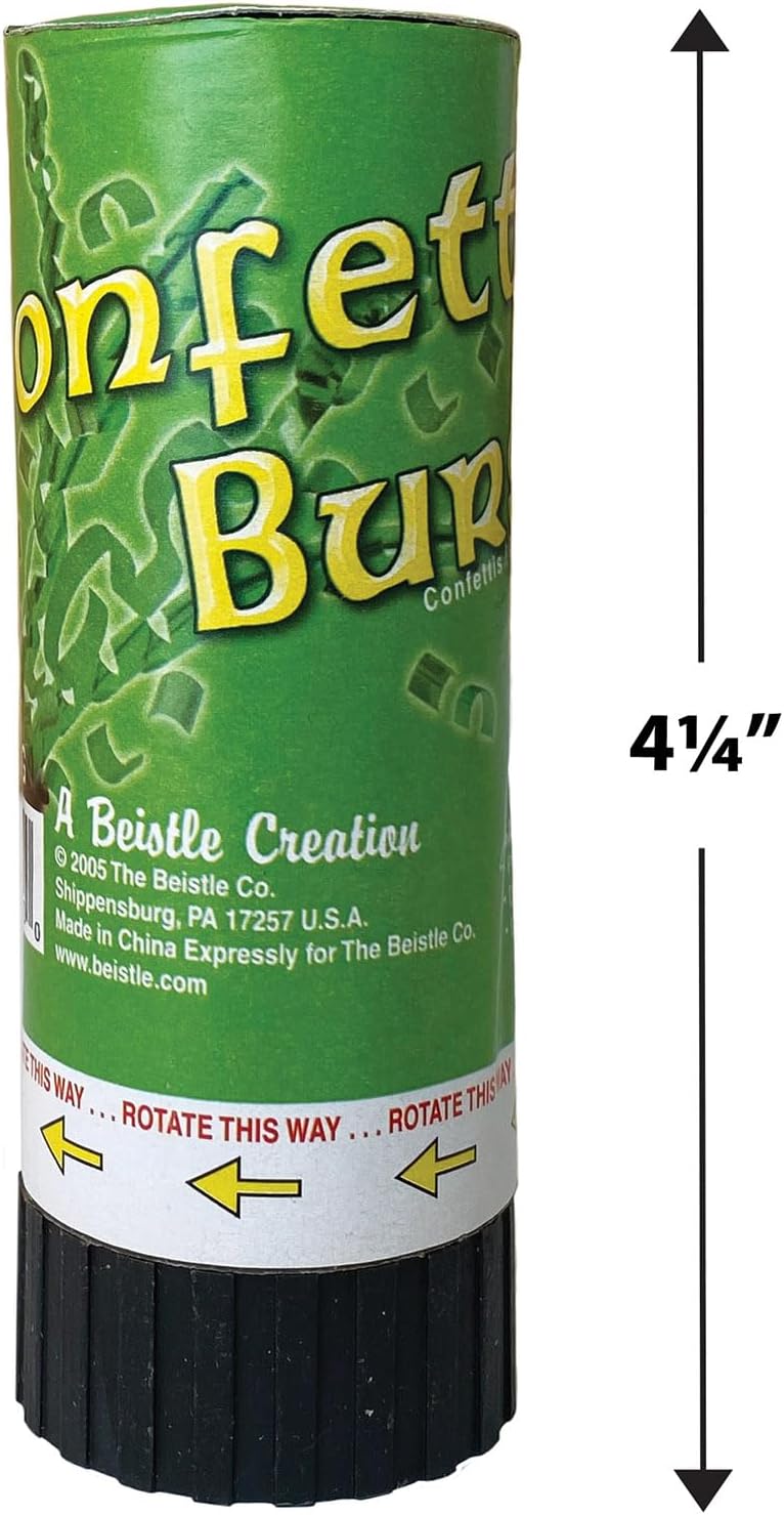 Beistle St. Patrick's Day Confetti TubesElevate your St. Patrick's Day celebrations with our St. Patrick's Day Confetti Tubes. This set includes 24 confetti tubes, each designed to add a touch of shimmering green magic to your parties and events. Inside every tube, you'll find metallic green plastic confetti that sparkles and shines under lights, creating an enchanting atmosphere that's perfect for the occasion.What makes these confetti tubes truly special is their spring-loaded design. With a simple twist of the bottom, the confetti comes out, adding excitement and surprise to your festivities. These tubes are compact and convenient, measuring 4.5 inches tall by 1.5 inches wide, making them easy to carry around and distribute among your guests.Whether you're hosting a St. Patrick's Day party, decorating a pub, or simply adding some Irish flair to your event, these Confetti Tubes are a must-have addition for a memorable and festive celebration. Get ready to spread the luck of the Irish with a burst of green confetti fun.