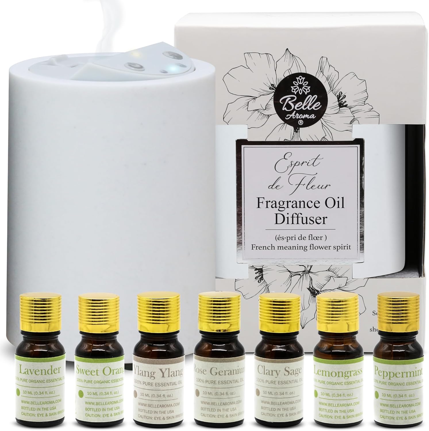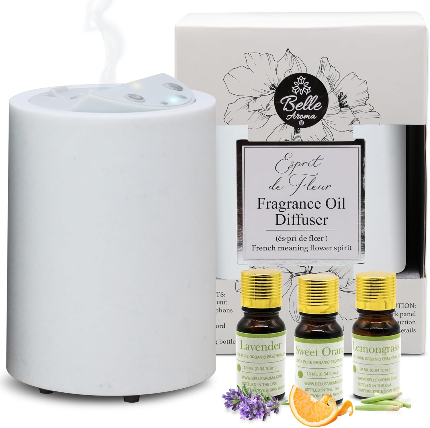 | Included Components | Belle Aroma Esprit de Fleur Essential Oil Diffuser | Waterless | Heatless, Oil Nebulizer, Premium Home and Professional Use Diffuser for Essential Oils (Dark Stone Finish) |