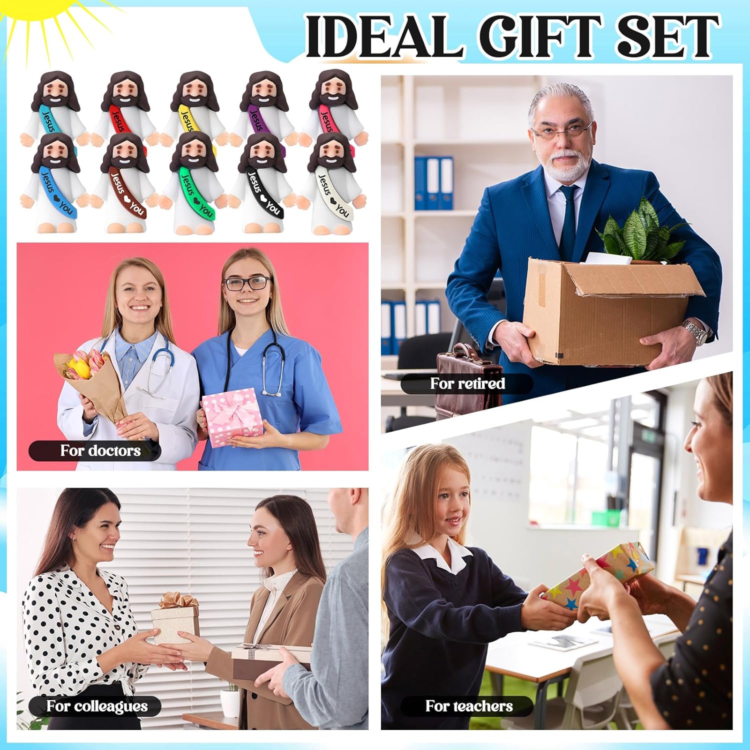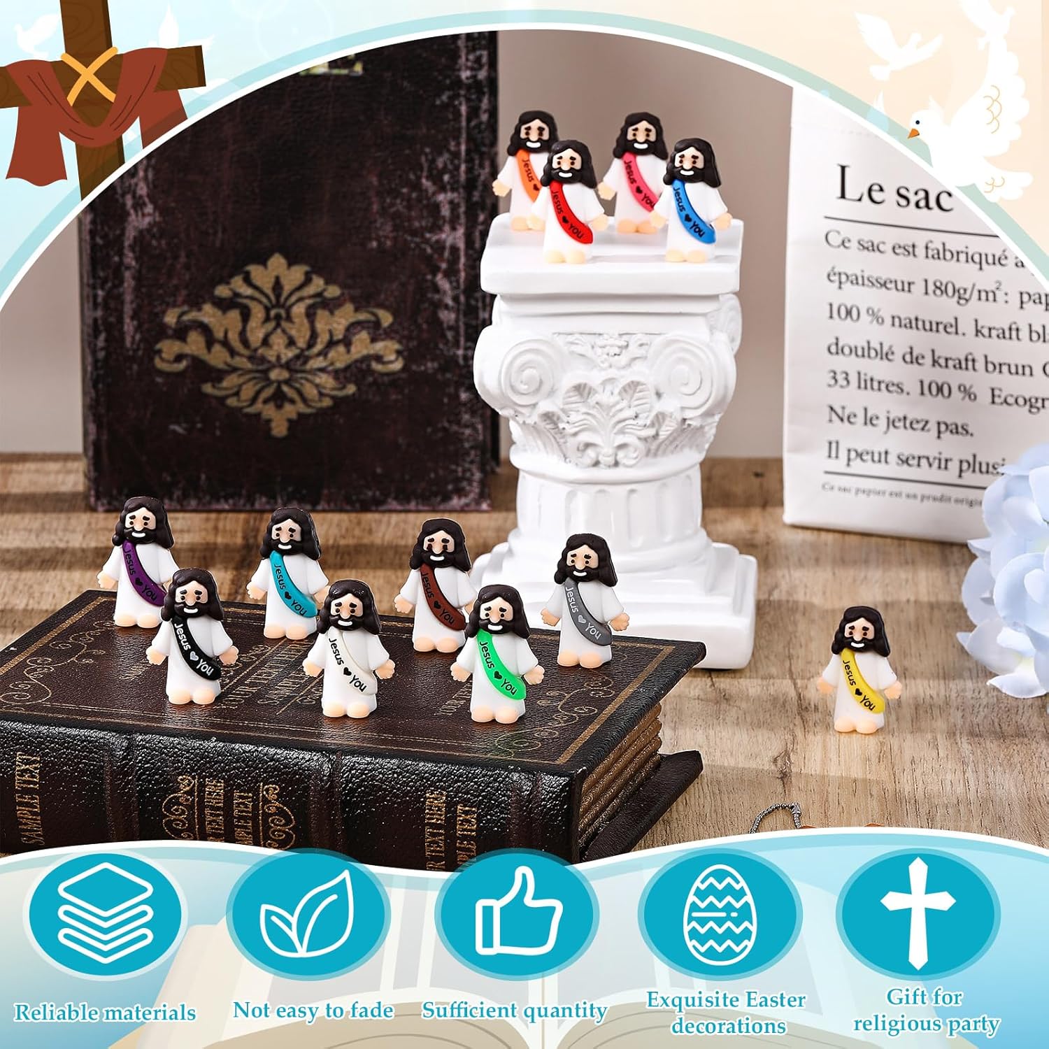 Features: Vibrant Attractive Colors: The colorful design of these rubber jesus figures attracts children and adults. The rich, vibrant colors enhance the visual appeal, making these baby Jesus figures more than just toys, but a delightful decorative piece for the classroom, nursery, or home altar. Make Meaningful Moments: Made from quality rubber, these little jesus figurines are durable while remaining soft and inviting to the touch. Ideal for hide and seek play or religious education. Their engaging design allows for creative storytelling and meaningful discussions about faith. Specifications: Material: rubber Color: as shown in the figure Size: about 1.2 X 1.4 inches/3 x 3.5 cm Package includes: 12 x Little jesus figures Notes: Manual measurement, please allow slight errors on size. The color may exist a slight difference due to different screen displays.