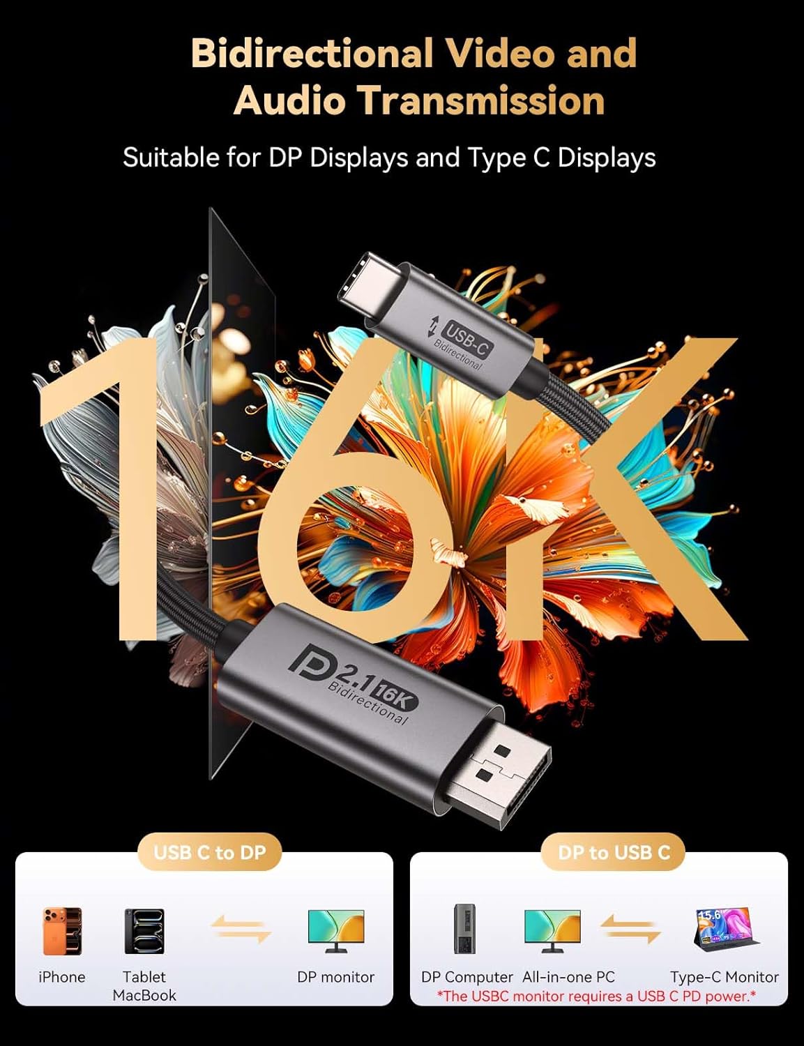 | Other Special Features of the Product | Bidirectional 16K USB C to DisplayPort 2.1 Cable |