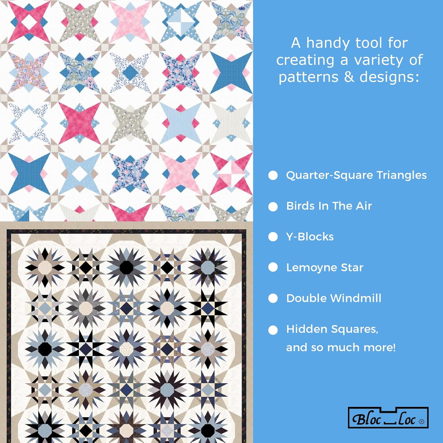 Squaring up and placing measurements on fabrics can be tedious, especially without reliable measuring tools. That’s why the Bloc Loc Half Square Triangle Ruler is trusted by professional quilters, crafters, hobbyists, and more! It’s a simple and practical tool for a variety of quilting applications. Designed with a perfect triangular shape, it makes squaring up and trimming easier. Each ruler is crafted with a non-slip back grip and a groove, securing the fabric in place and keeping it from sliding or rocking while you work. On top of that, its boldly printed grid lines offer accurate measuring. Unlike rulers with neon prints, Bloc Loc’s allows for convenient viewing no matter the design and color of the fabric underneath. Its clear acrylic material also allows for convenient viewing of the material underneath—no more constantly lifting the ruler while placing or following markings. No more relying on ordinary flat rulers when Bloc Loc lets you trim 90% faster every time! Bloc Loc Rulers are easy to use and thoughtfully crafted for anybody with a passion for creating quilted works of art. Available in 6 1/2 “ per 1 count. Effortlessly create arts, crafts, & quilt projects with the Bloc Loc Triangle Ruler! Get yours now and start quilting!