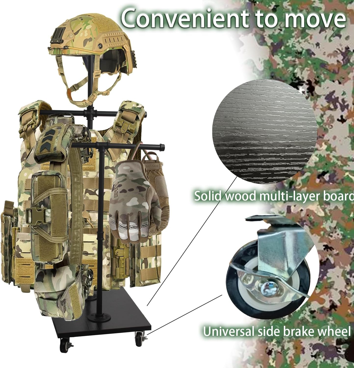 Body armor stand military a hit with military folks, hunters, outdoor buffs, and anyone who needs a solid way to store and show off their gear. Tactical gear stand military you can plop down anywhere in your house - the living room, bedroom, study, or collection room. flaunt your tactical vests and helmets whenever and wherever you like. Tactical gear rack stand can handle the heaviest loads of body armor and equipment while taking up hardly any space. We've got a bunch of storage options for you,like police gear display rack. police gear rack display means you can create the ideal storage setup to fit your needs.