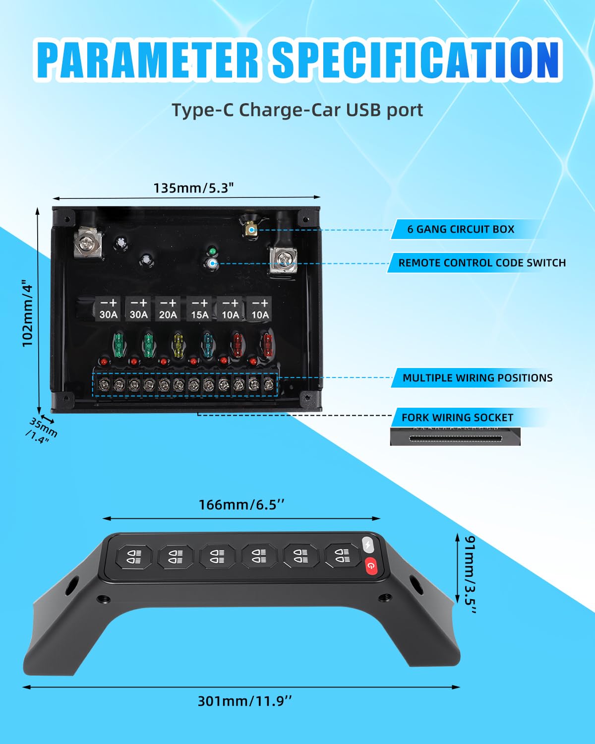 | Included Components | 6 Gang Switch Panel |