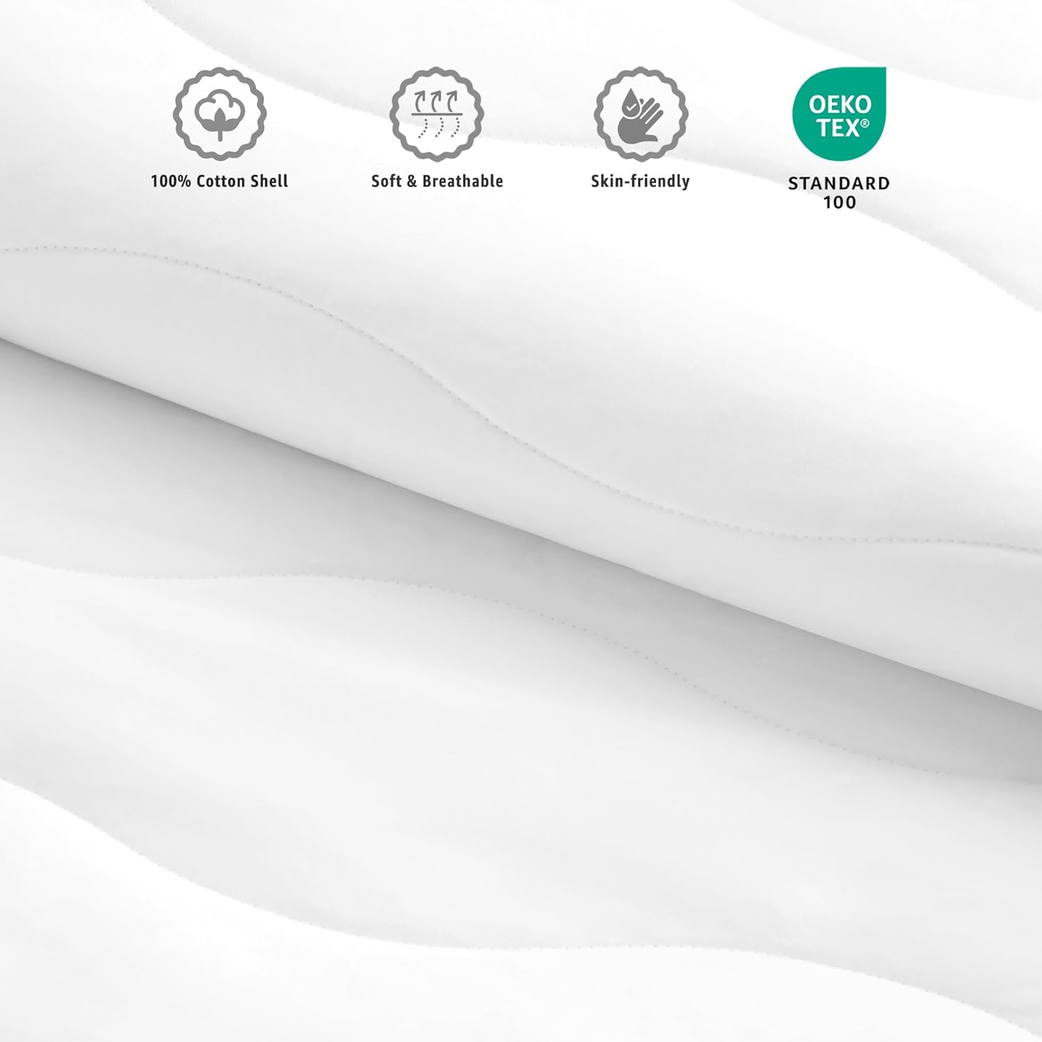 Upgrade your sleep with our premium Breathable & Waterproof Mattress Protector! Featuring a 100% cotton top layer for luxurious softness and breathability, plus a noiseless polyurethane barrier that blocks moisture effectively. The quilted down-alternative polyester filling adds cloud-like comfort, while the extra-deep 22-inch skirt ensures a secure fit on most mattress. Machine washable for easy care, this protector is perfect for busy households. Enjoy cooler, cleaner sleep with this all-in-one protective solution - click 'Add to Cart' today for peaceful nights!
