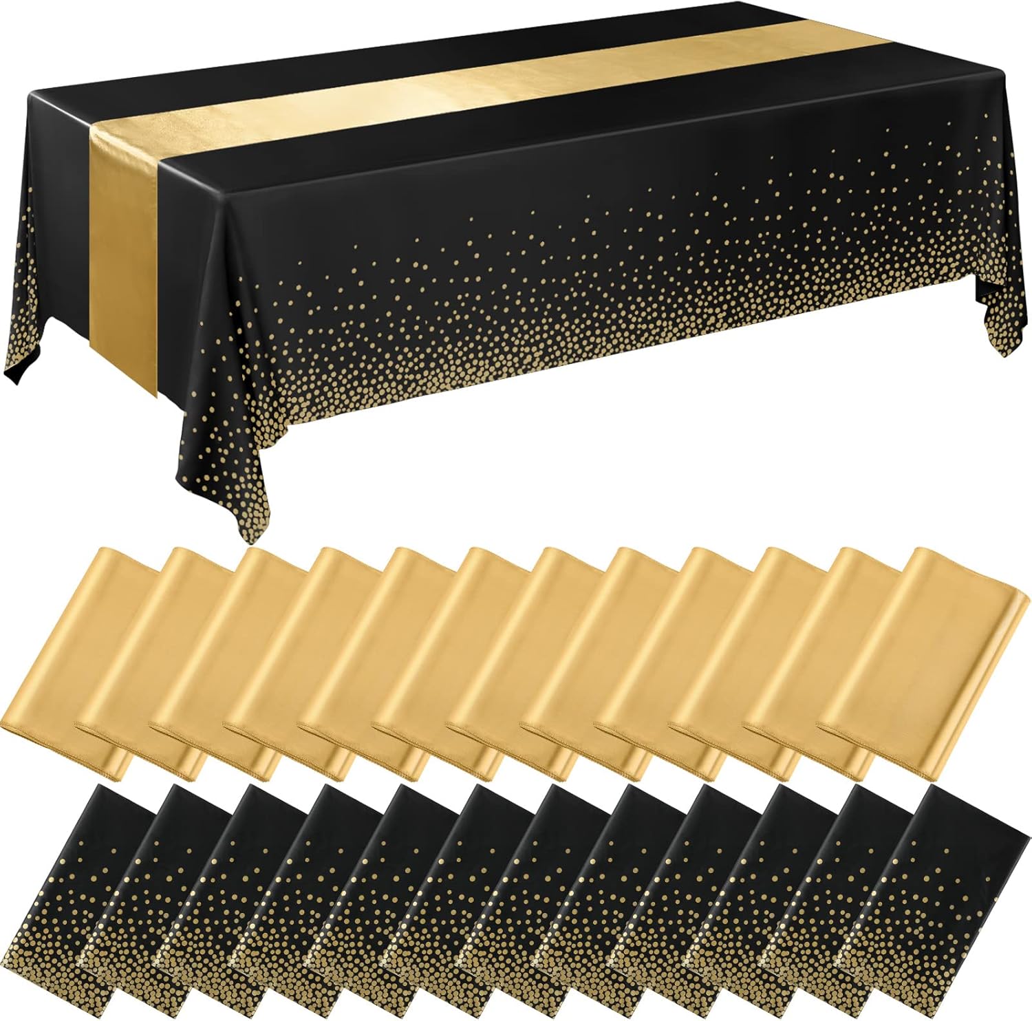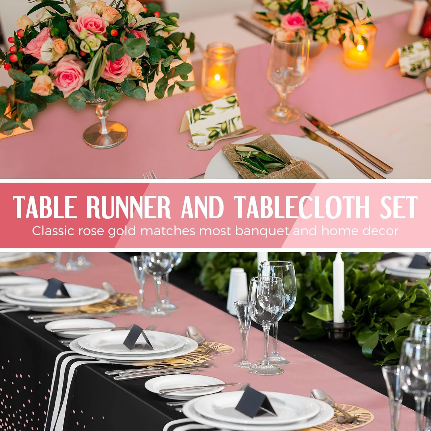 • Sufficient Quantities: what you will receive are 24 packs of table covers, containing 12 pieces of plastic tablecloths and 12 pieces of satin table runners; Besides, the sets of table decorations can reduce your selection time and meet your replacement needs