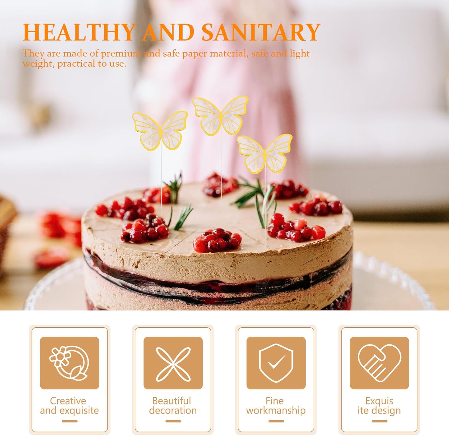 Package Include 10 x Sets of Adornments Characteristics -Material: Paper -Product Info:Butterfly Cake Decoration -Note: Each set includes 11 pieces toppers cake topper decorations. -The butterflies shape design creates a festive atmosphere for your party. delicate cake decor -With the cake decorations, your cake looks more beautiful and delicious cupcake decor. -Fine workmanship, adding brilliance and fun to your cakes, very practical and chic wedding cupcake decorations. -Perfect for decorating cakes, , and other party desserts, very practical cake decoration. -They can be used at parties to make your party more interesting and decorative wedding cupcake toppers.Goods Informationdecorative cake decor They can be used at parties to make your party more interesting.adorable cupcake topper The unique butterflies shape design will make your cake vivid and .cupcake toppers These cake decors for party, which are made of , are durable and practical